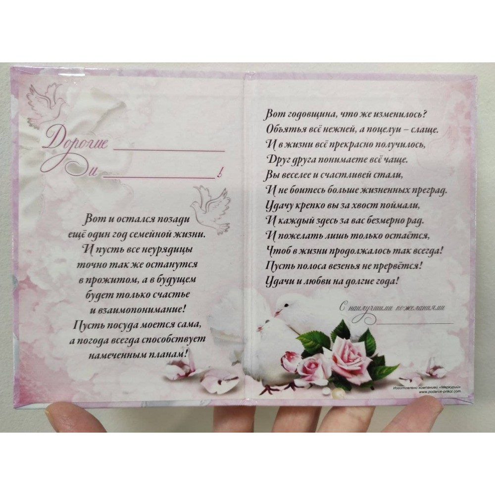 Опис Диплом для дорогих вам людей, яких ви хочете привітати, з побажаннями та віршами, вказати їхні імена та залишити вітальну листівку від себе. Все це можна зробити за допомогою цього вітального диплому "з річницею весілля!" Розмір диплома у складеному вигляді: Висота 16 см, ширина 11 см.