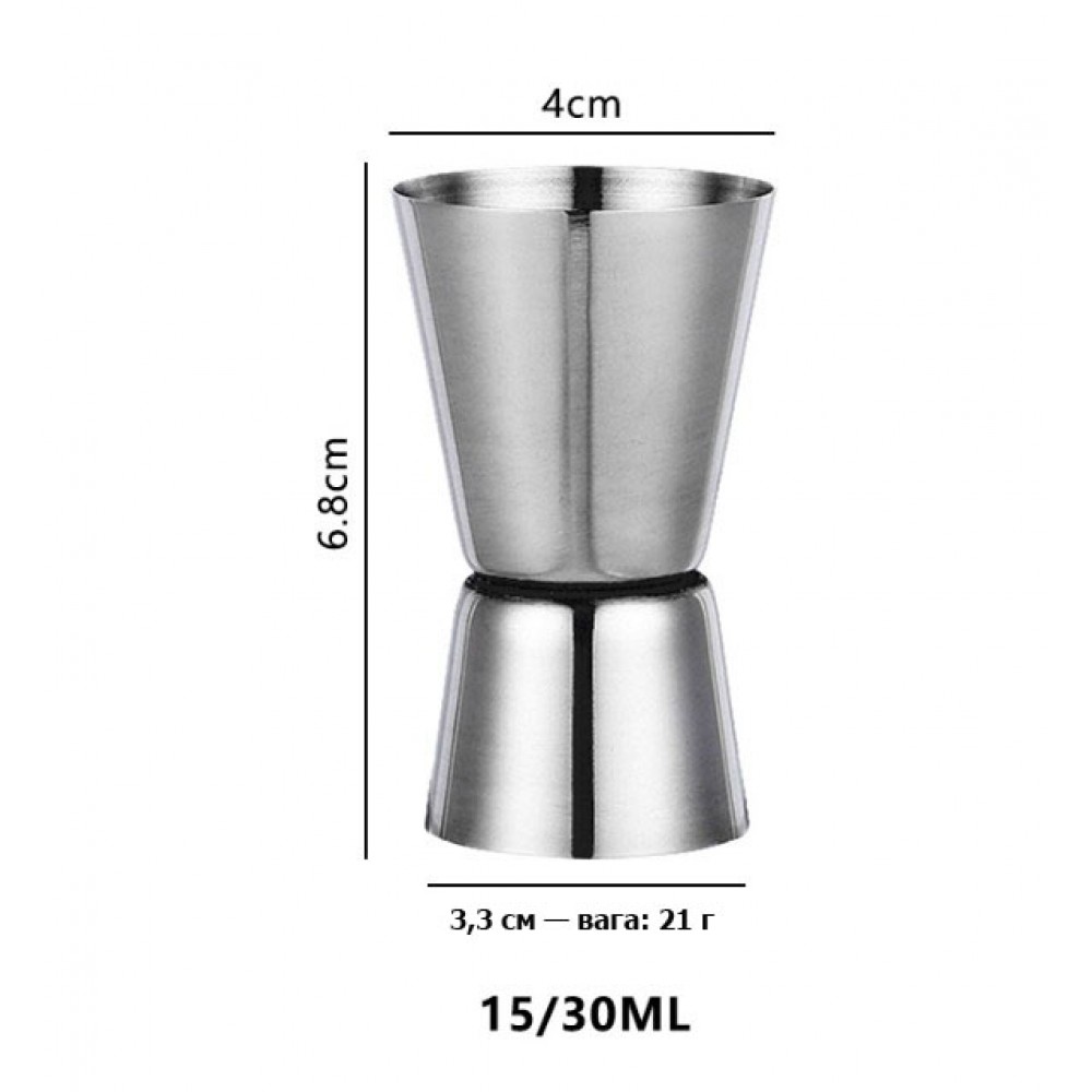 Джигер подвійний 15/30 мл з нержавіючої сталі