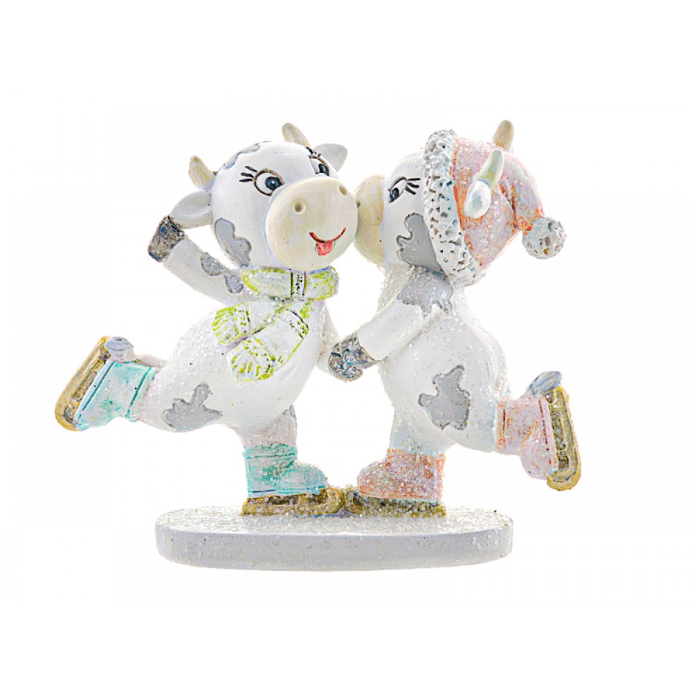 Фігурка декоративна "Корівки на ковзанах" 10,5х8,5см 192-104 - Фігурка корівок на ковзанах, розміром 10,5x8,5 см, що символізує зимові розваги та веселощі.