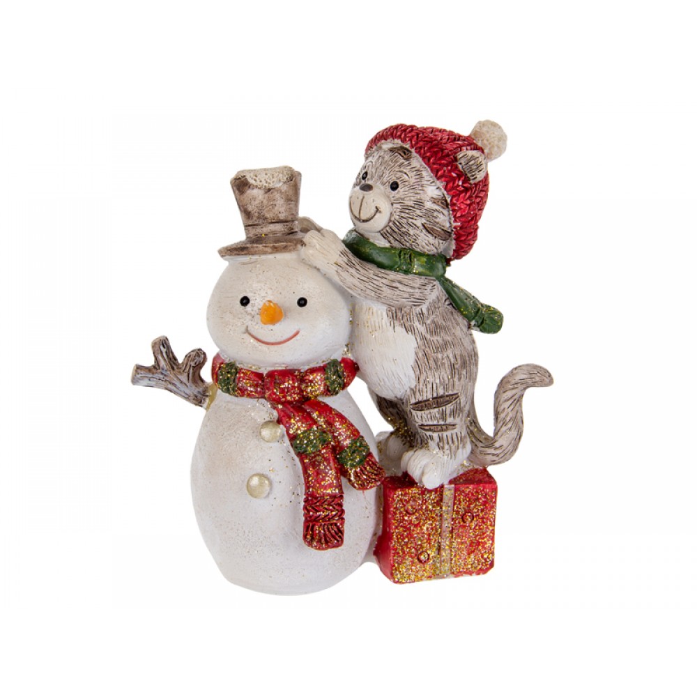 Фігурка декоративна "Котик та сніговик" 10см 192-169