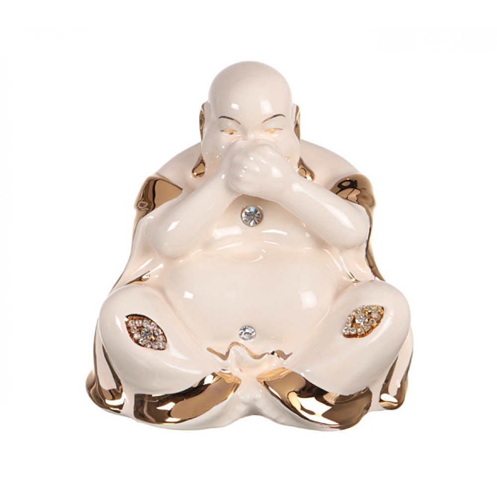 Фігурка декоративна "Будда мовчу" розміром 13 см - це витончений витвір мистецтва, який додасть нотку спокою та гармонії у ваш інтер'єр. Виготовлена з високоякісної порцеляни, ця фігурка має чудову деталізацію та відмінну міцність.