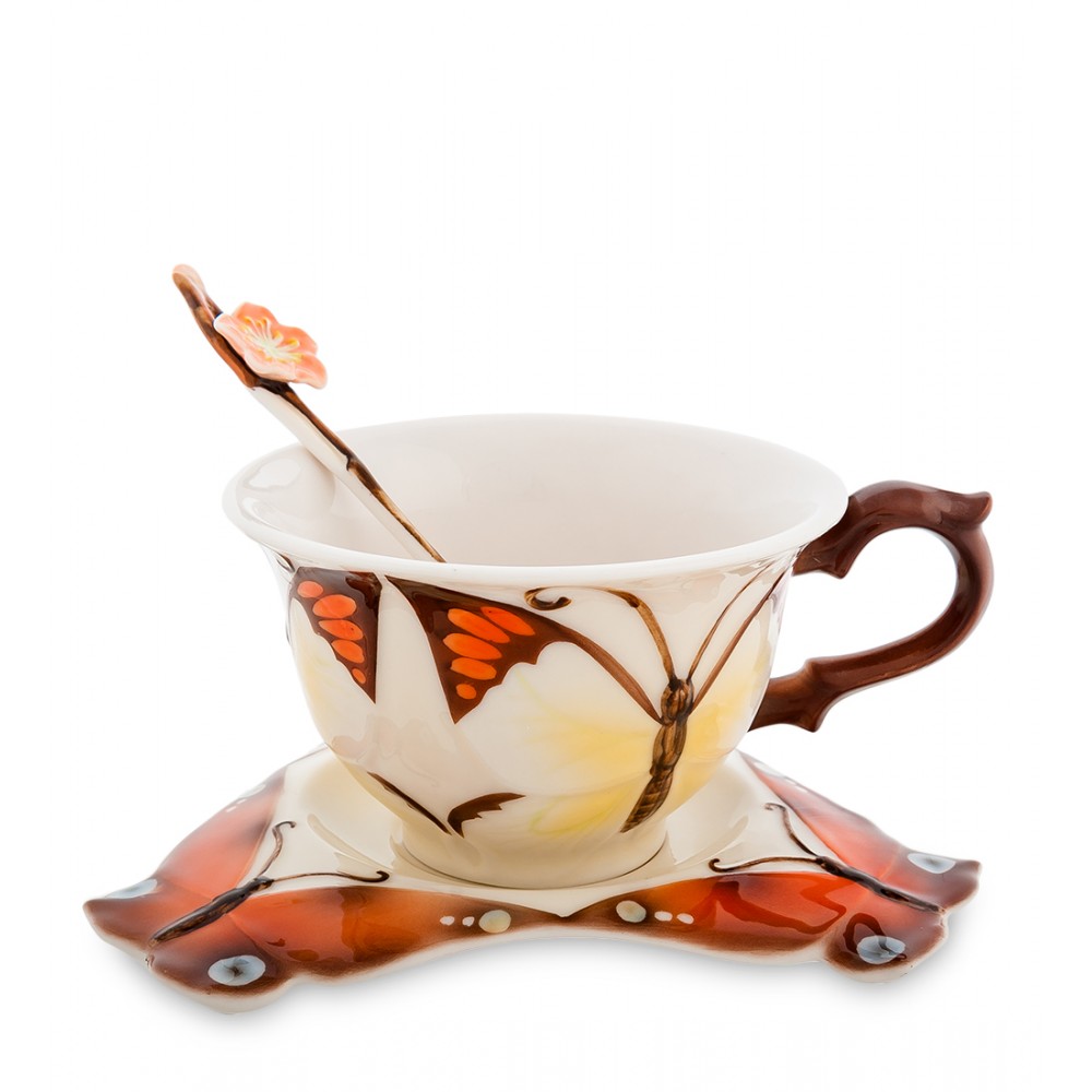 Нежность изысканного тонкого фарфора и нежность невесомых крыльев бабочки – такую чашечку даже в руки берешь сначала с опаской, такой хрупкой она представляется при первом взгляде. Из нее хочется пить только дорогие чайные сорта, достойные собственным вкусом влиться в эту композицию легкости и нежности. К блюдечку слетелись три бабочки, окружили его собственными крыльями, словно никого не хотят подпустить к поразительному напитку.