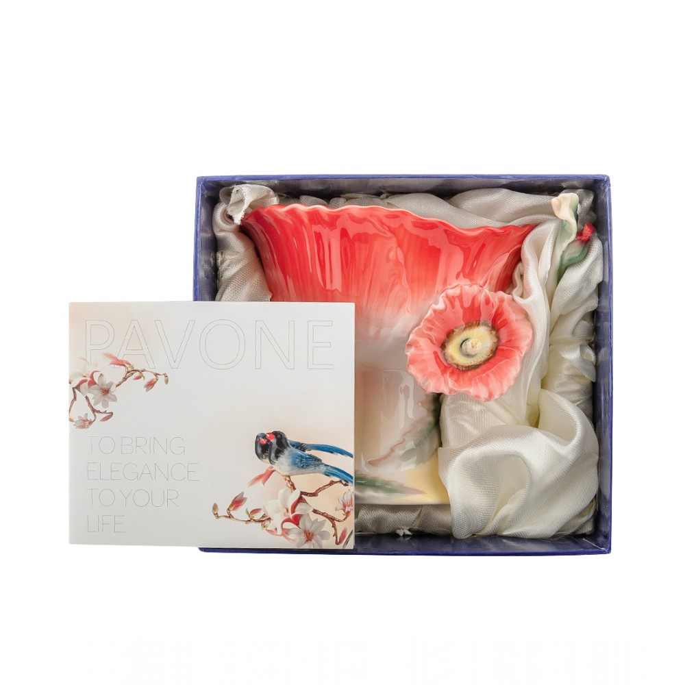 Креманка прекрасно впишется в любую коллекцию фарфоровых изделий. Она вместительная, декорирована большим маком и похожа на распустившийся бутон, из которого едва заметно показалась небольшая ложка в виде стебля.;