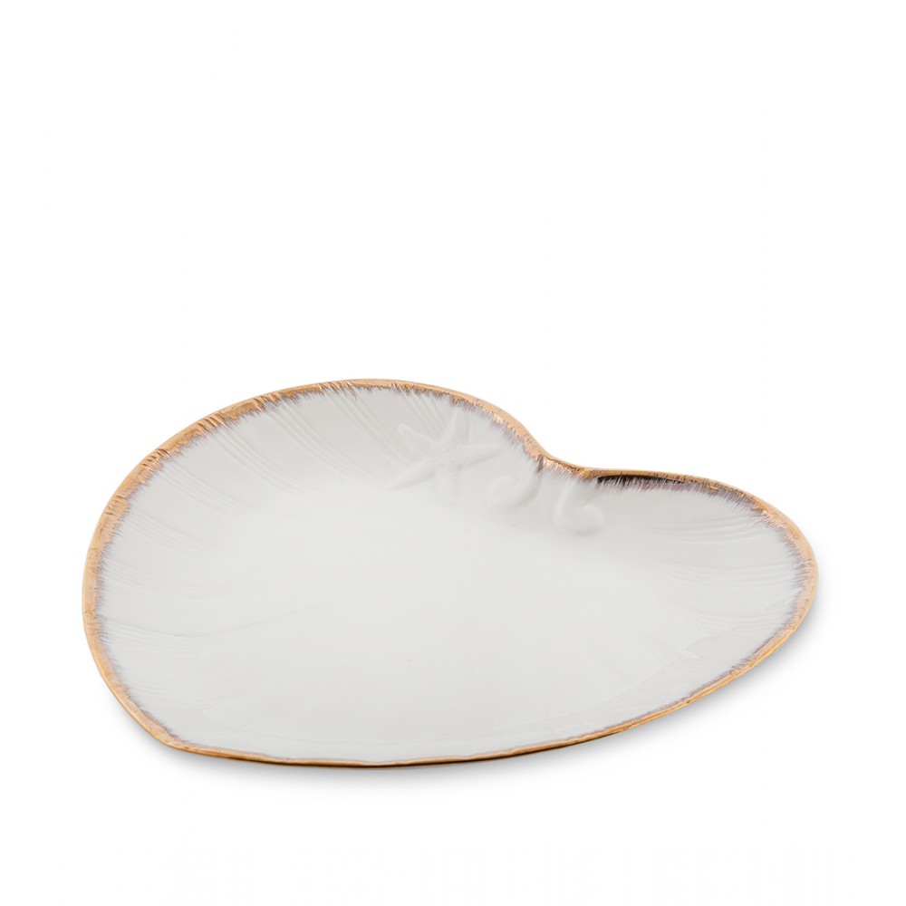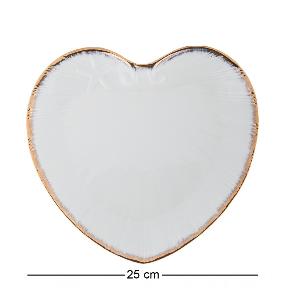 Осуществление красоты и совершенства линий представлено в тарелке « Морская ракушка » . Белого цвета неглубокая тарелка привлекает внимание собственной золотой каймой и практически не заметными линиями, которые вырисовываются на едином фоне. ; Тарелка станет настоящим украшением коллекции, потому что она имеет нестандартную форму сердца.