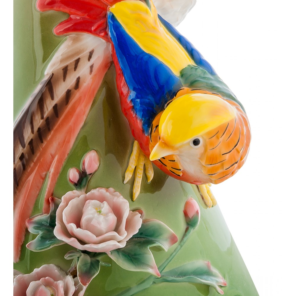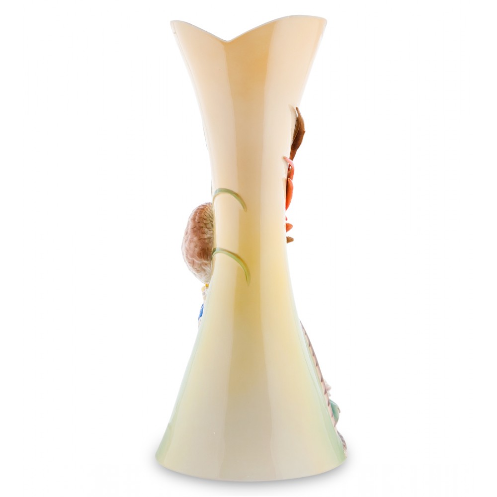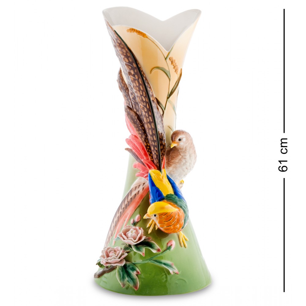 Подобный дизайн сразу привлекает внимание. Разнообразие красок и яркость сочетаемых между собой оттенков говорит про особенный стиль. Ваза для цветов будет реальным украшением коллекции из фарфора. Плавные линии только выделяют, насколько ваза красиво выглядит. Подарите сказку собственным родным в виде шикарной вазы « Золотой фазан » .