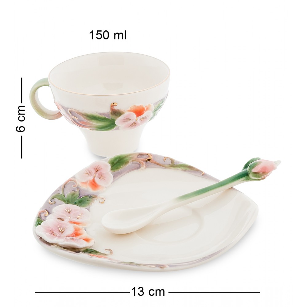 Что бывает лучше утра с чашкой ароматного, прочно заваренного кофе? В данные моменты строятся грандиозные планы, разрабатывается план дня. В данный момент встречаешься за завтраком с близкими, и бесконечно важно, какая в данный момент окружает нас атмосфера. Кофейная пара « Виола » — это то, что необходимо, чтобы утро началось очень хорошо. Изделие обрадует изысканным дизайном и необычным орнаментом, а ведь это очень важно — прямо утром соприкоснуться с реальной красотой!