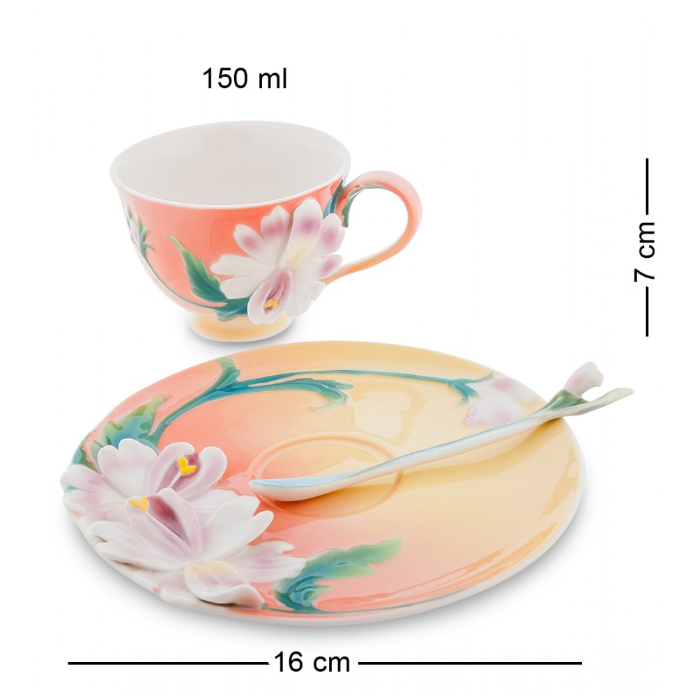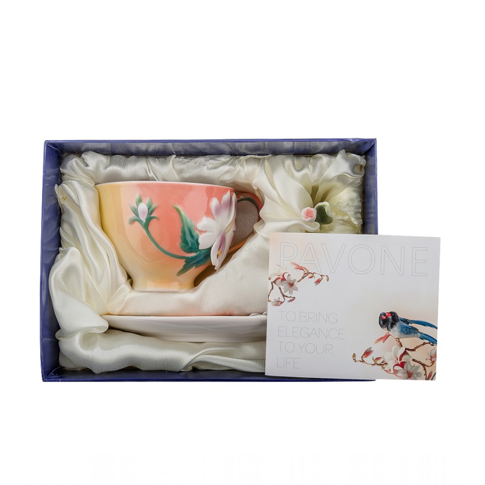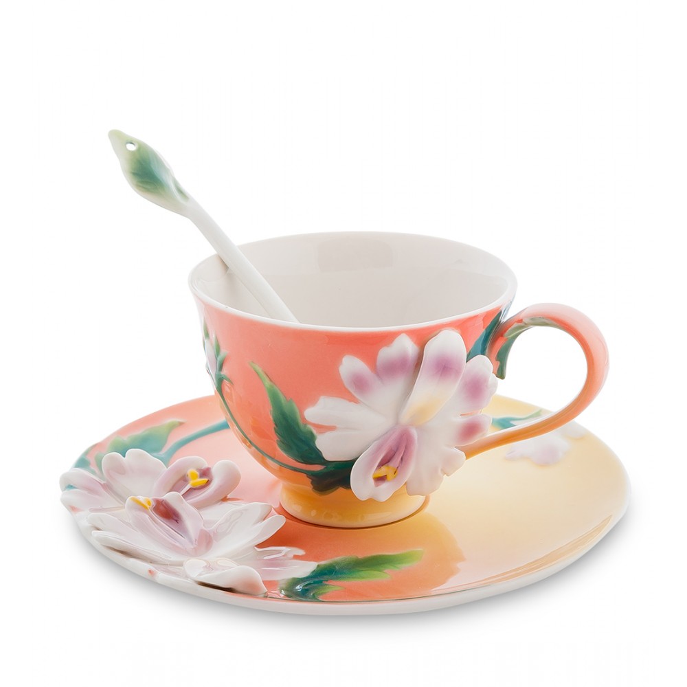 Пара для чаяепития, выполненная в тёплых, приятных цветах, сделает красивее каждый дом и украсит любое чаепитие. Мягкие переходы оттенков, изящный рисунок и абсолютная гармония между чашечкой и блюдечком — такой этот комплект, который дарит приятное настроение и уютную атмосферу.