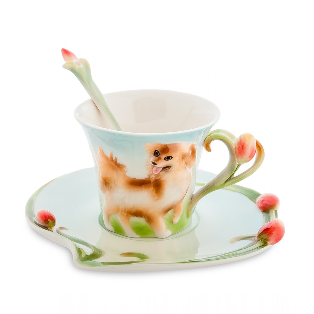 Собака — друг человека. И если даже у вас нет возможности завести себе питомца, то вы можете всегда взглянуть в добрые и умные собачьи глаза, если у вас есть пара для чаяепития « Собака » . Изделие выполнено с большим вкусом и фантазией, мастерство художников смогло создать поразительный и реальный рисунок. И теперь эта пара для чаяепития готова приукрасить ваш дом, чтобы вы постоянно были настроены позитивно и умиротворенно.