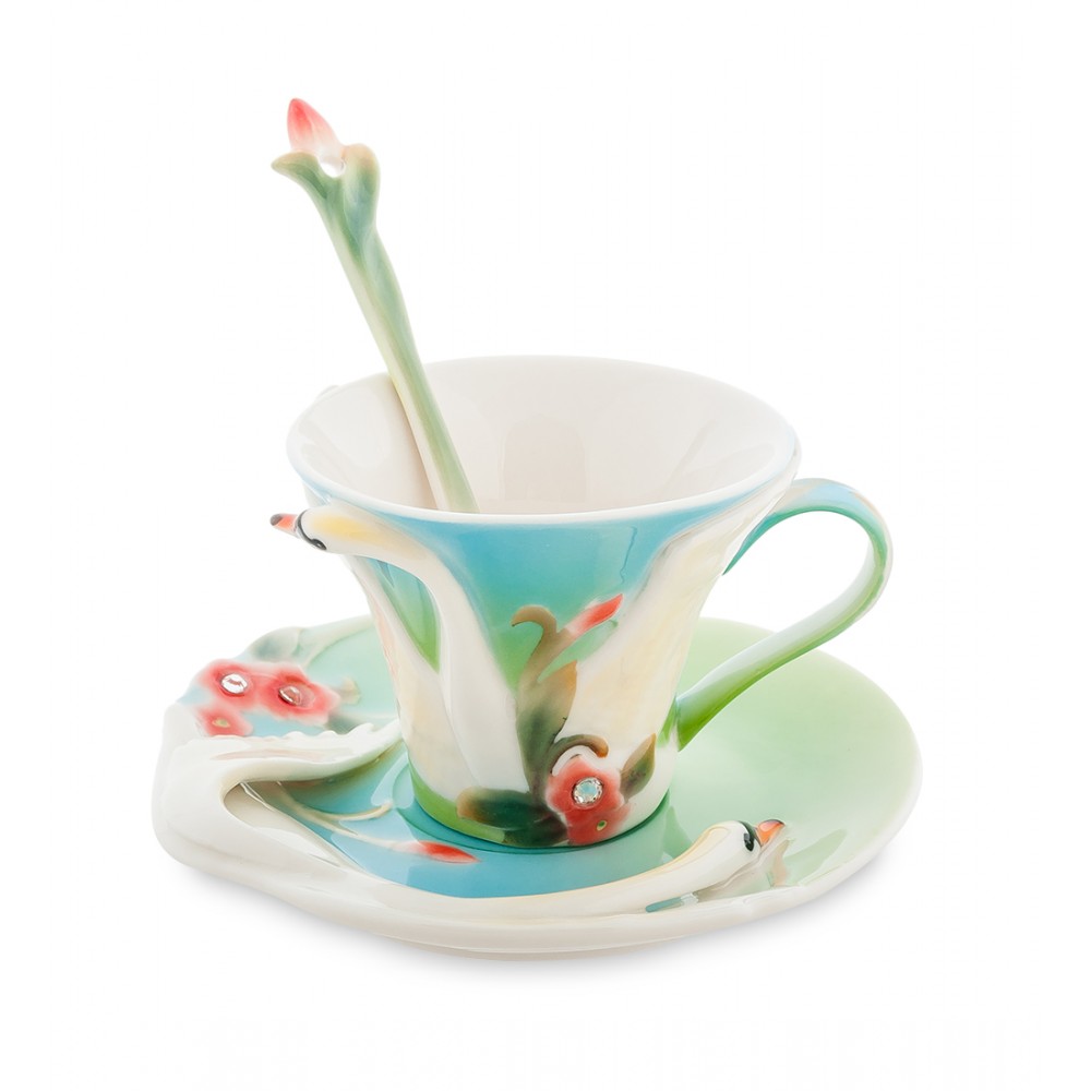 Эта кофейная пара достойна того, чтобы из неё пили наименее затратный и ароматный кофе. Медленно перетекающие друг в друга цвета, пластика и грациозность форм благородного фарфора, и также превосходное совершенство великолепных лебедей - это все постоянные атрибуты королевской роскошной посуды.