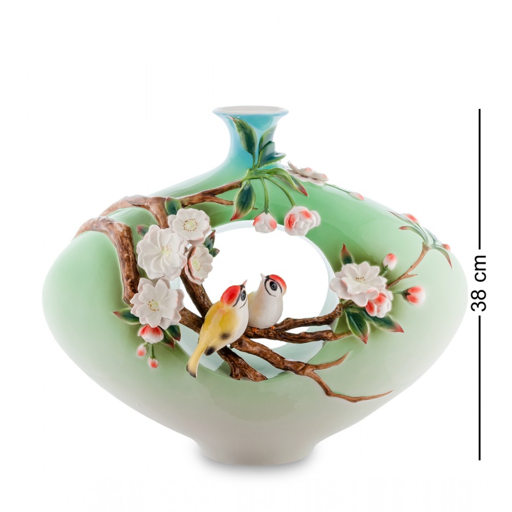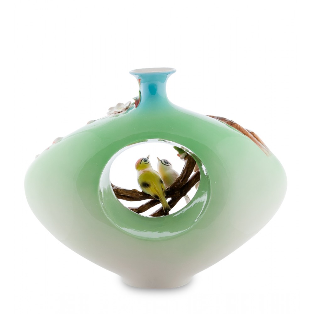 Ваза для цветов « Бегония » — яркий и красочный акцент, который может обновить обстановку дома, придать ей изысканность, и исключительную красоту. Как кусочек настоящей природы выглядит этот сосуд, на котором талантливые мастера смогли очень реально изобразить и веселых беспечных птиц, и ветви растения, и ароматные цветы.