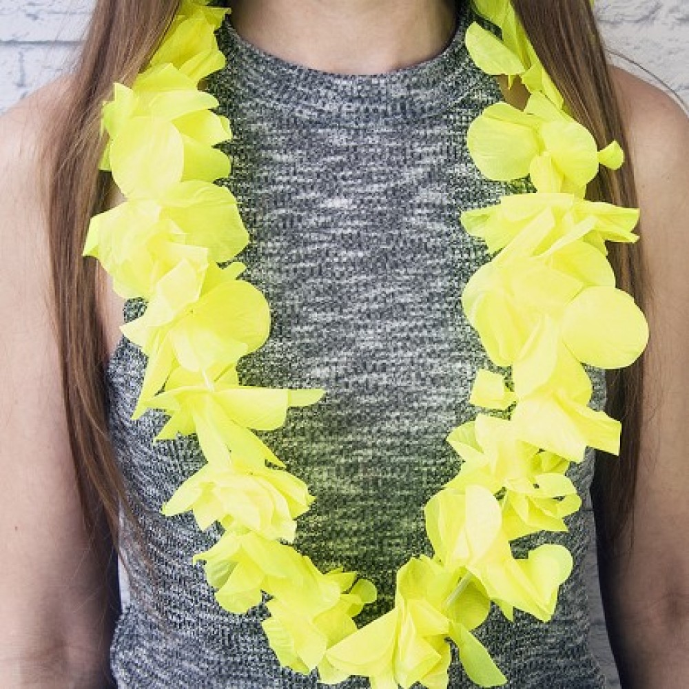 Без гавайських гірлянд з квітів весела тематична вечірка у гавайському стилі не обійдеться! Гавайські леї Орхідеї (жовті) надягають на дорогих і високоповажних гостей, але на маскараді пишні намисто лише підкреслять образ витонченої островитянки. Плавні рухи і танці, що зачаровують, у гавайських ритмах запам'ятаються гостям завдяки шикарним гірляндам на шиї. Вечірка перестає бути сірою та нудною, коли в її русло вливаються яскраво – барвисті Гаваї! Щоб гості відчули себе в потоці свята, інтернет-магазин Подарок-ТУТ рекомендує купити кожному гостю гавайський атрибут як оригінальний подарунок – тоді ніхто не забуде про казково проведений час!