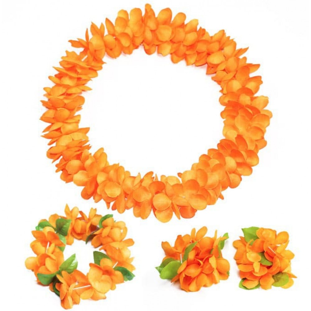 Гавайський набір лей з 4 предметів оранжевого кольору: створіть атмосферу тропічного раю
