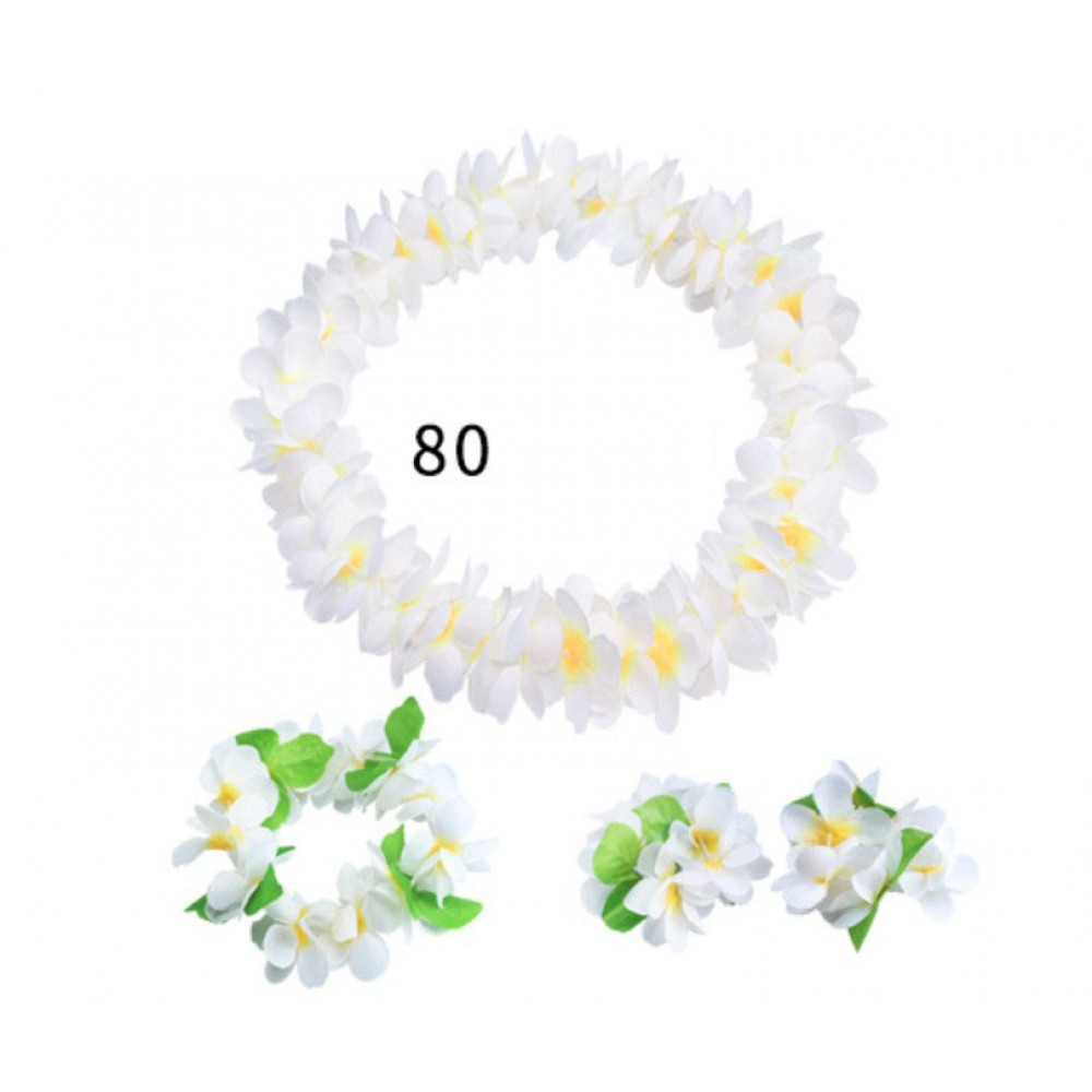 Гавайські леї Білизняні 80 пелюстків, без зелені, 4 предмети для гавайської вечірки