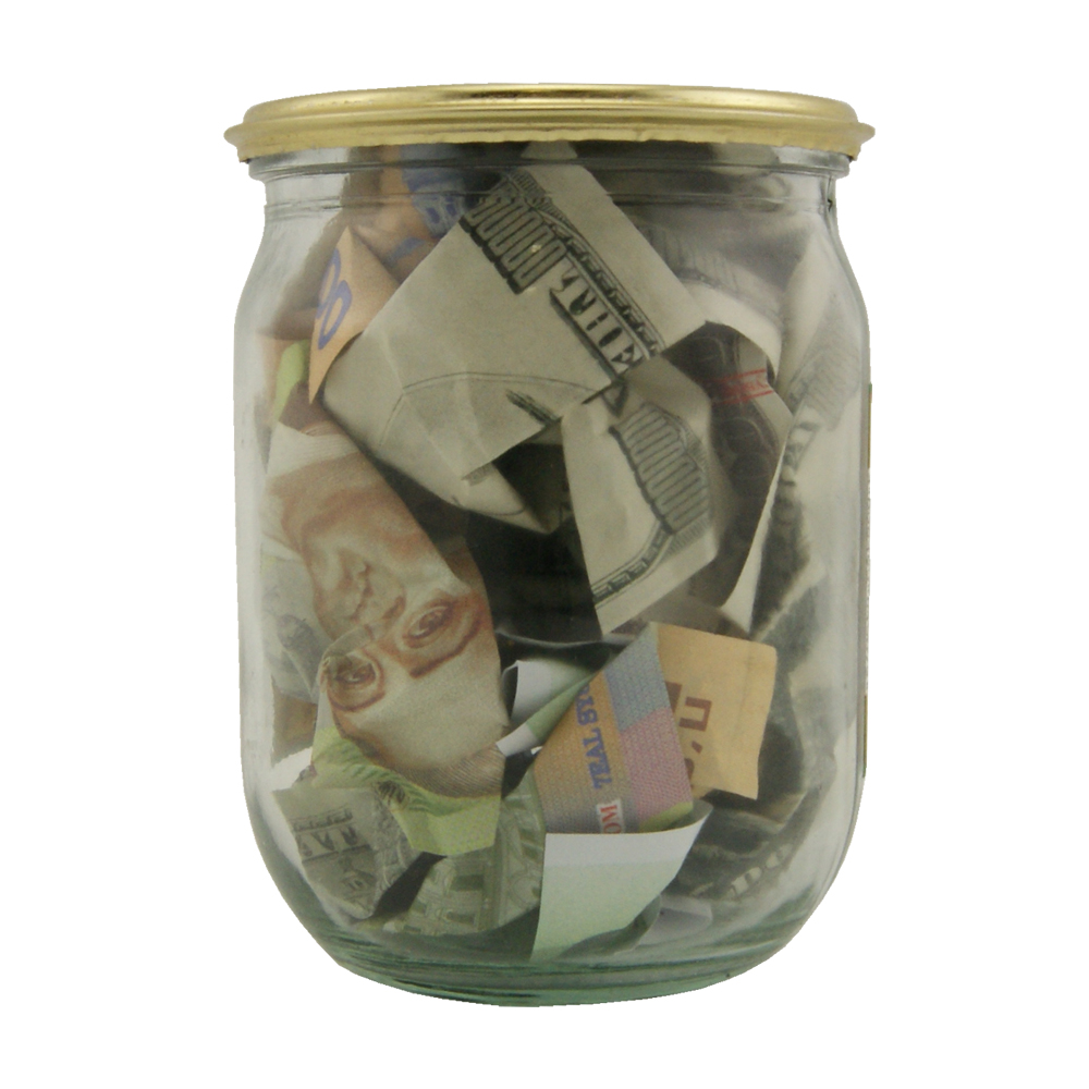 банка стекло, внутри бумага