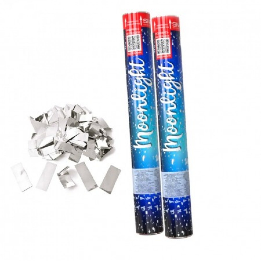 Пневматична Хлопавка 40см Moonlight з довгою фольгою - це великий картонний тубус з балоном, заповненим стисненим повітрям, наповнений конфетті. Хлопавка з конфетті є невід'ємною частиною святкування дня народження на весіллях, карнавалах або тематичних вечірках. Гігантська пневматична хлопавка має довжину 40см. Використовувати хлопавку можна вдома без побоювання, адже хлопавка абсолютно безпечна, вона не є піротехнікою і може використовуватися як на відкритому повітрі, так і в приміщенні. Дальність дії: 7-8 метрів. Принцип роботи його простий: поверніть основу хлопавки в напрямку, вказаному стрілками, і в повітря злетить срібне довге конфетті, яке повільно і урочисто опускатиметься вниз, осипаючи всіх присутніх на вашому святі. Купити Хлопушку пневматичну оптом та по дропшипінгу недорого можна в інтернет магазині Карнавал Жартів. Величезний вибір хлопух з доставкою по Україні.