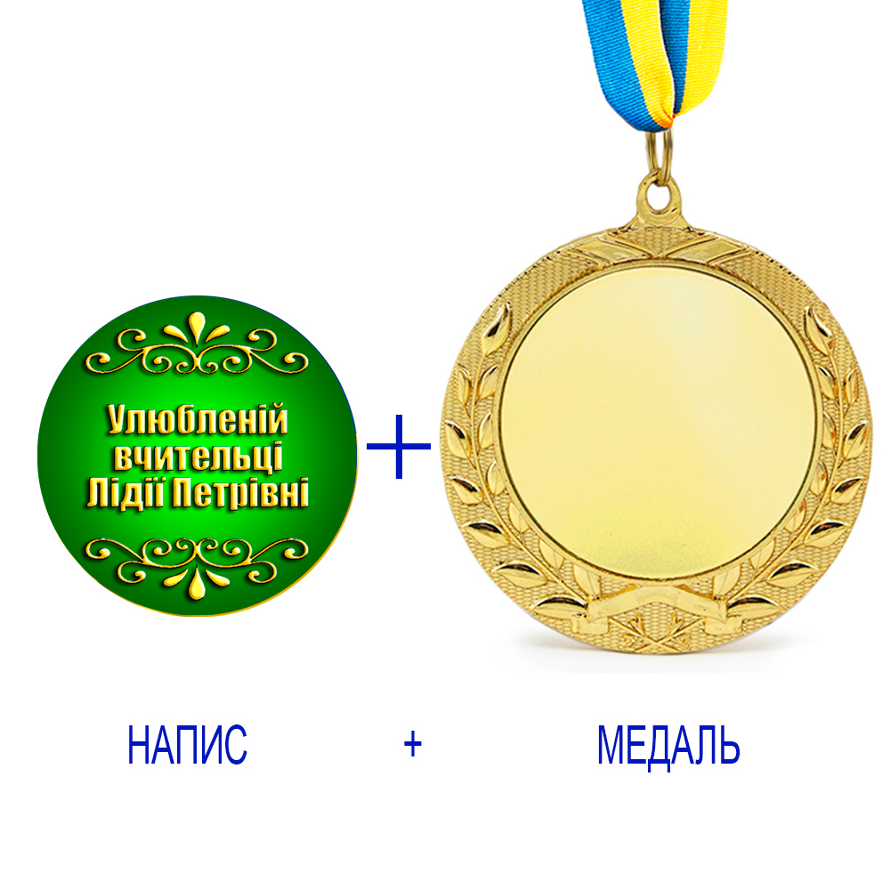 Гравірувальних робіт ми не робимо. Медаль подарункова золотого кольору в обрамленні лаврового листя, на якій розміститься ваш напис з привітанням - справить незабутнє враження! Відвантаження товарів з індивідуальним написом провадиться на наступний робочий день після підтвердження макета та оформлення замовлення. У нас широкий асортимент кубків для спортивних та танцювальних змагань, випускних вечорів, проведення церемоній нагородження та корпоративних подарунків та сувенірів. І це далеко не все, що ми можемо для Вас зробити. Залишились питання? Задайте їх менеджеру, замовивши дзвінок на сайті.