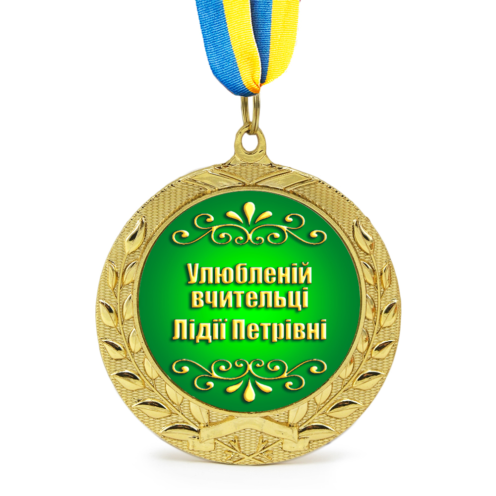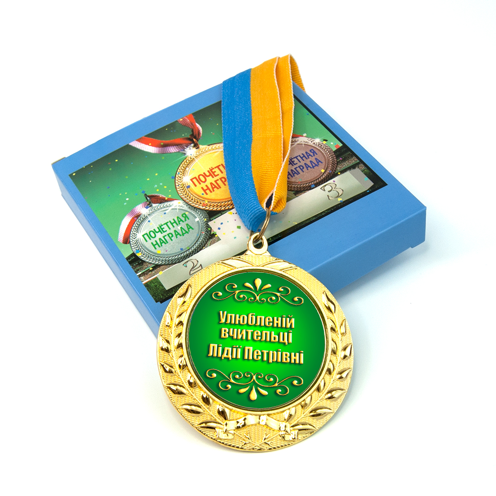 Індивідуальний друк №11 напису на подарунковій медалі зелена (max 50 символів)
