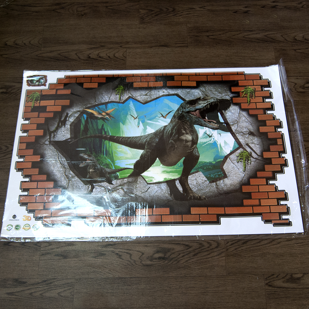 Інтер'єрна наклейка 3D Динозавр крізь стіну 3D69003 90х60см
