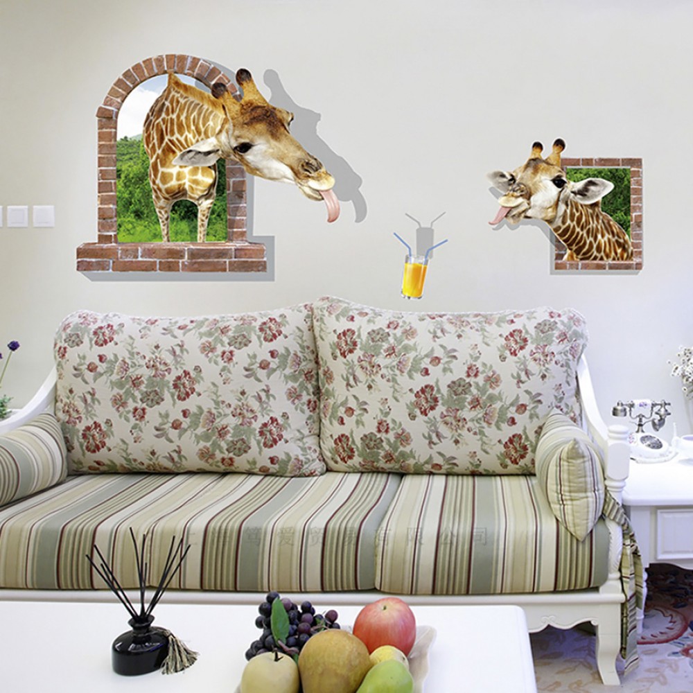 Інтер'єрна наклейка 3D Жираф та сік DLX0861 90х60см