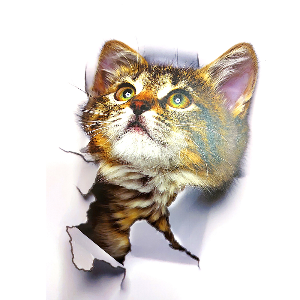 Інтер'єрна наклейка 3D Кіт XH2001 25х16.5см – це швидкий спосіб класно прикрасити свій будинок. Інтернет-магазин Карнавал Жартів пропонує Вам купити інтер'єрні наклейки тематики тварин, які ідеально підійдуть на кухню, спальню, вітальню, дитячу або ігрову кімнату. Прикрасу на стіну оцінять діти у своїх спальнях чи ігрових кімнатах. Інтер'єрна наклейка 3D Кіт XH2001 25х16.5см принтом кошеня, що виглядає крізь стіну. Розмір листа з наклейками: 16,5х25 см. Як 3D наклейка клеїться на стіну? Спосіб поклейки дуже простий. Для початку потрібно очистити поверхню, на яку потрібно наклеїти. Після цього знімаємо плівку і переносимо малюнок на стіну або іншу площину рукою або ганчіркою. На які поверхні можна клеїти інтер'єрну наклейку? Поклейка можлива на будь-яку ІДЕАЛЬНО ГЛАДКУ ГЛЯНЦЕВУ поверхню, наприклад: стіна пофарбована глянсовою фарбою без будь-яких рельєфів (у фарбі не повинно бути крейдяного компонента), скло, дзеркало, лаковані поверхні, гладкий пластик. На шпалери клеїти НЕ МОЖНА. Доглядати стікери на стіну також досить легко, для цього необхідно лише іноді протирати їх вологою губкою або ганчіркою. Яскравість і насиченість наклейок не змінюється з часом, крім того, вони абсолютно стійкі до вологості.