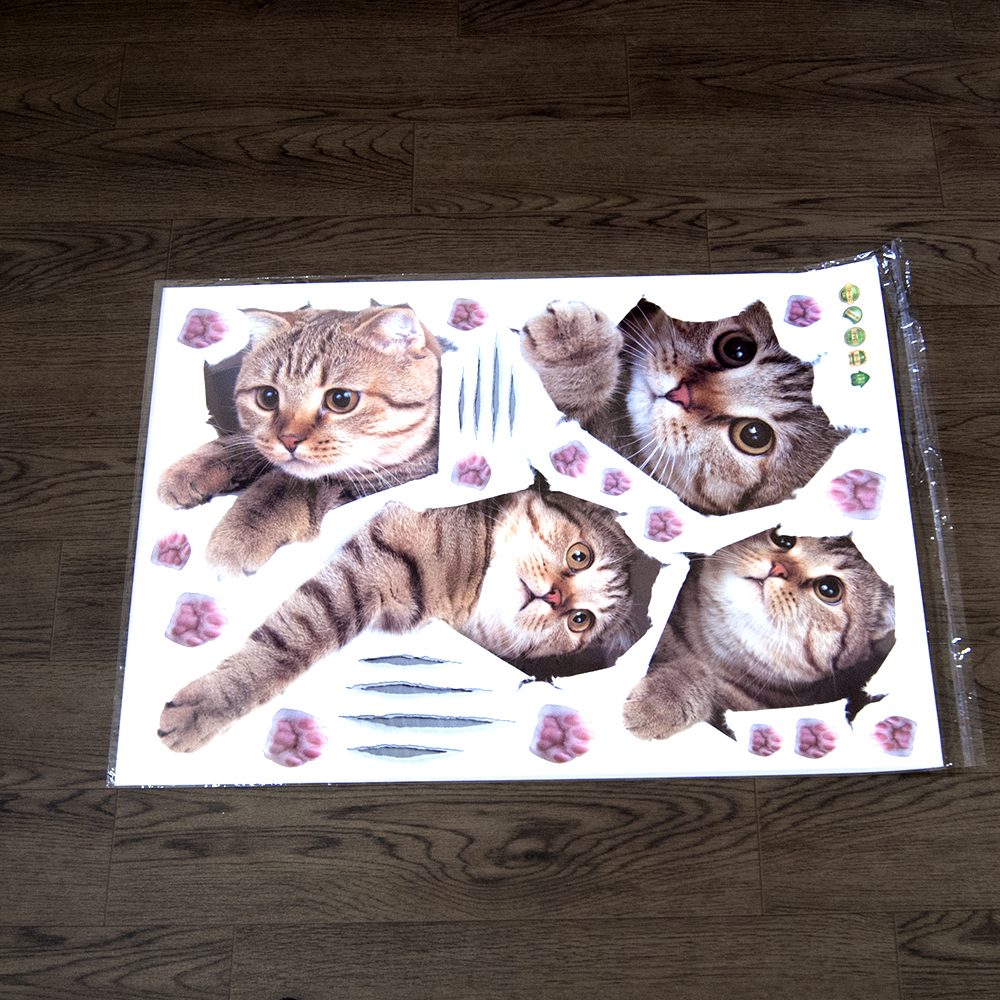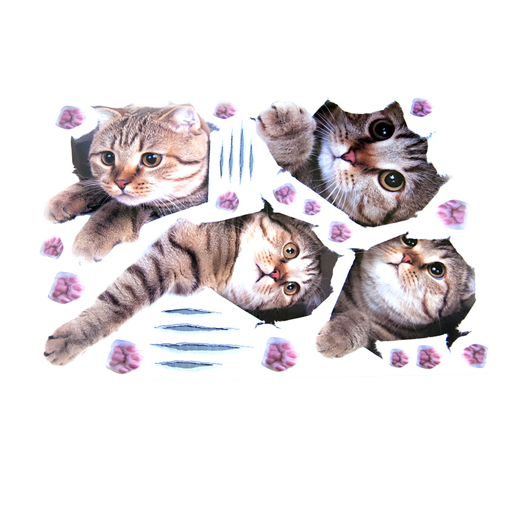 Інтер'єрна наклейка 3D Кошенята SK7116 90х60см - це швидкий спосіб класно прикрасити свій будинок. Інтернет-магазин Карнавал Жартів пропонує Вам купити інтер'єрні наклейки тематики тварин, які ідеально підійдуть на кухню, спальню, вітальню, дитячу або ігрову кімнату. Прикрасу на стіну оцінять діти у своїх спальнях чи ігрових кімнатах. Інтер'єрна наклейка 3D Кошенята SK7116 90х60см принтом кошенят, що виглядають крізь стіну. Розмір листа з наклейками: 60х90 см. Як 3D наклейка клеїться на стіну? Спосіб поклейки дуже простий. Для початку потрібно очистити поверхню, на яку потрібно наклеїти. Після цього знімаємо плівку і переносимо малюнок на стіну або іншу площину рукою або ганчіркою. На які поверхні можна клеїти інтер'єрну наклейку? Поклейка можлива на будь-яку ІДЕАЛЬНО ГЛАДКУ ГЛЯНЦЕВУ поверхню, наприклад: стіна пофарбована глянсовою фарбою без будь-яких рельєфів (у фарбі не повинно бути крейдяного компонента), скло, дзеркало, лаковані поверхні, гладкий пластик. На шпалери клеїти НЕ МОЖНА. Доглядати стікери на стіну також досить легко, для цього необхідно лише іноді протирати їх вологою губкою або ганчіркою. Яскравість і насиченість наклейок не змінюється з часом, крім того, вони абсолютно стійкі до вологості.