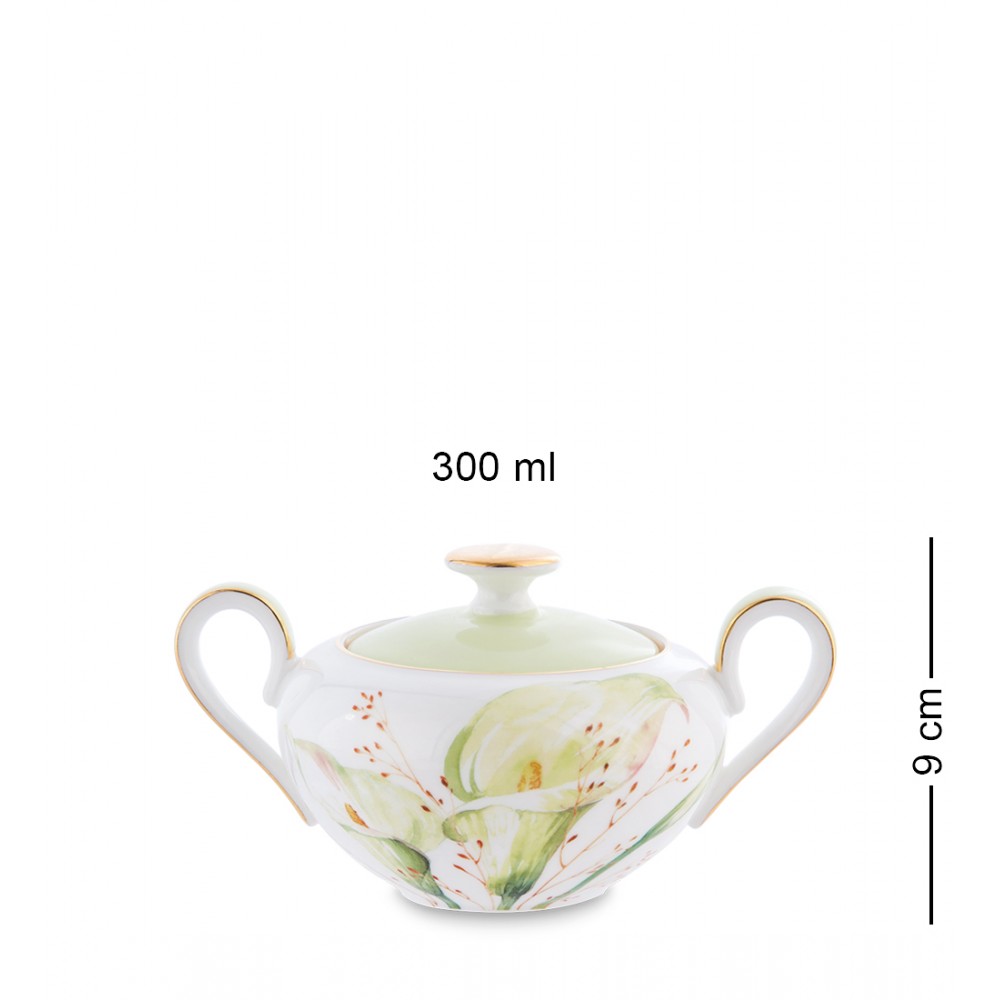 Объем чашки: 200 мл; Объем чайника: 900 мл; Объем молочника: 200 мл; Объем сахарницы: 300 мл