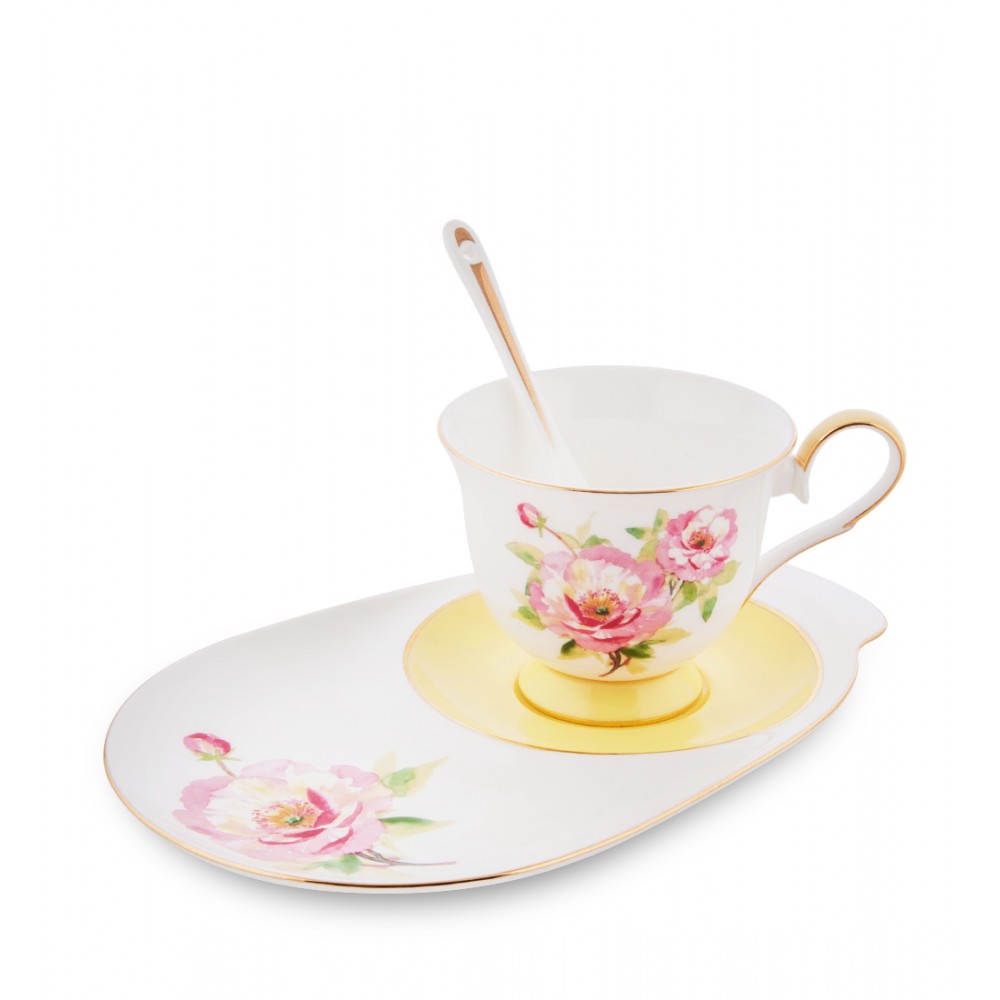 Завораживающая и неповторимая чайная пара « Пионы » , выполнена из качественного костяного фарфора, который лучше всего подходит для спокойного чаепития в теплой обстановке. Изящный рисунок пиона делает чашечку более красивой и утонченной. А вот золотистая отделка гармонирует с красивой росписью, предавая тем самым чайной паре некую женскую гармонию. Нежные оттенки пиона и неповторимая белизна фарфора наполняют душу радостью и умиротворением.
