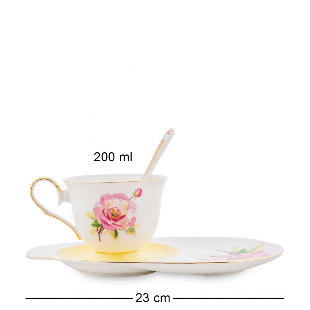 Размер чайной пары: 23 х 8,5 см; объем чашечки: 0,2л. ;