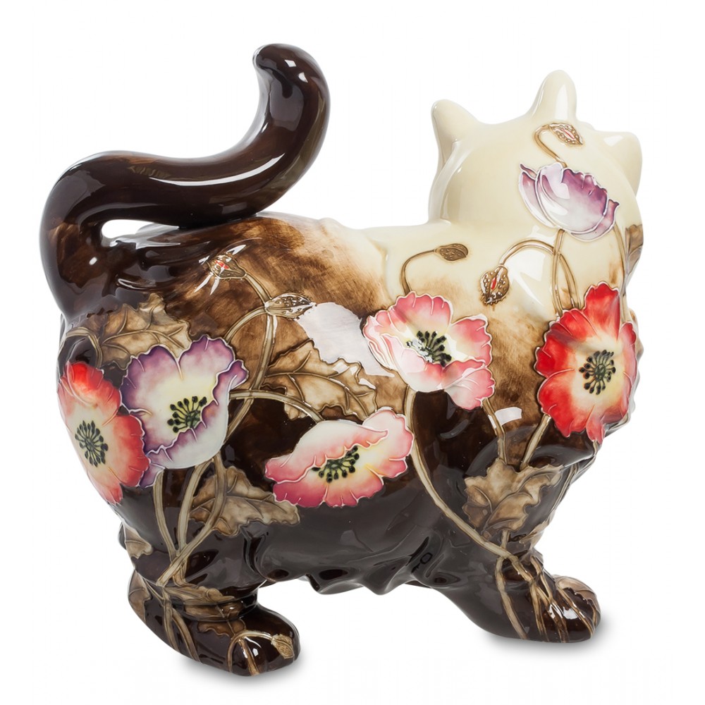 Кошки у многих людей ассоциируются с домашним теплом и уютом. Статуэтка кошки - замечательный талисман, такой должен быть в каждом доме! Фарфоровая фигурка "Кошка" выполнена в теплой бежево-коричневой гамме, на фоне которой эффектно смотрятся пестрые маки.