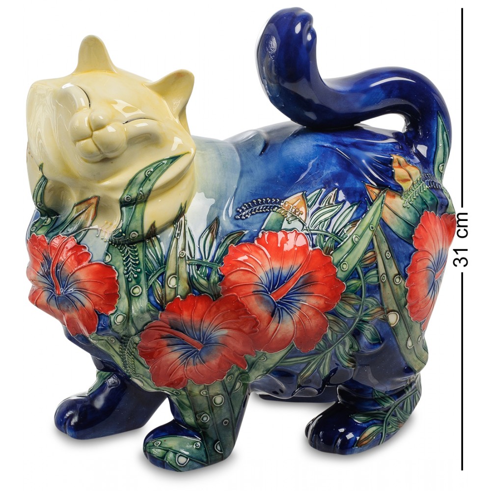 Принято считать, что кошка – приносит счастье и теплоту в дом, отпугивает злых духов и является регулятором негативных энергетик. Когда кошка сыта и довольна, то и в доме все ладно. Фигурка "Кошка" олицетворяет именно такую кошку. ; Фарфоровая фигурка размером 31 см. изготовлена в виде упитанной шикарной кошки, на мордочке которой застыла довольная улыбка блаженства и неги. Автор решил расписать лапки и живот фигурки прекрасными яркими цветами, чтобы подарить ощущение весны и праздника.