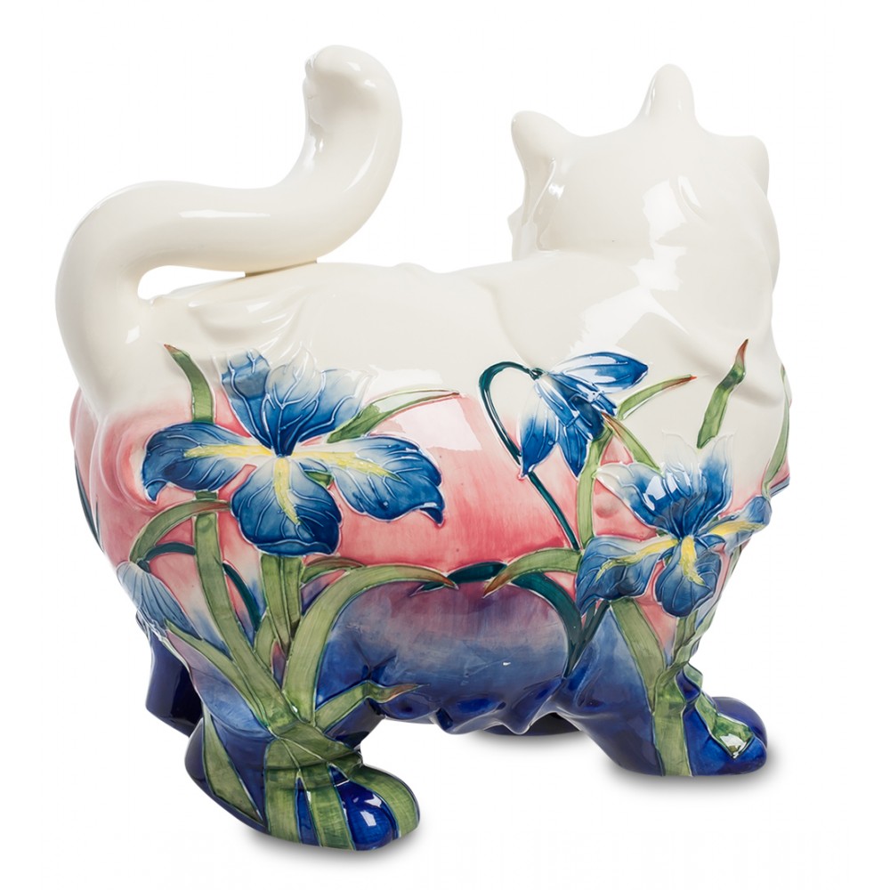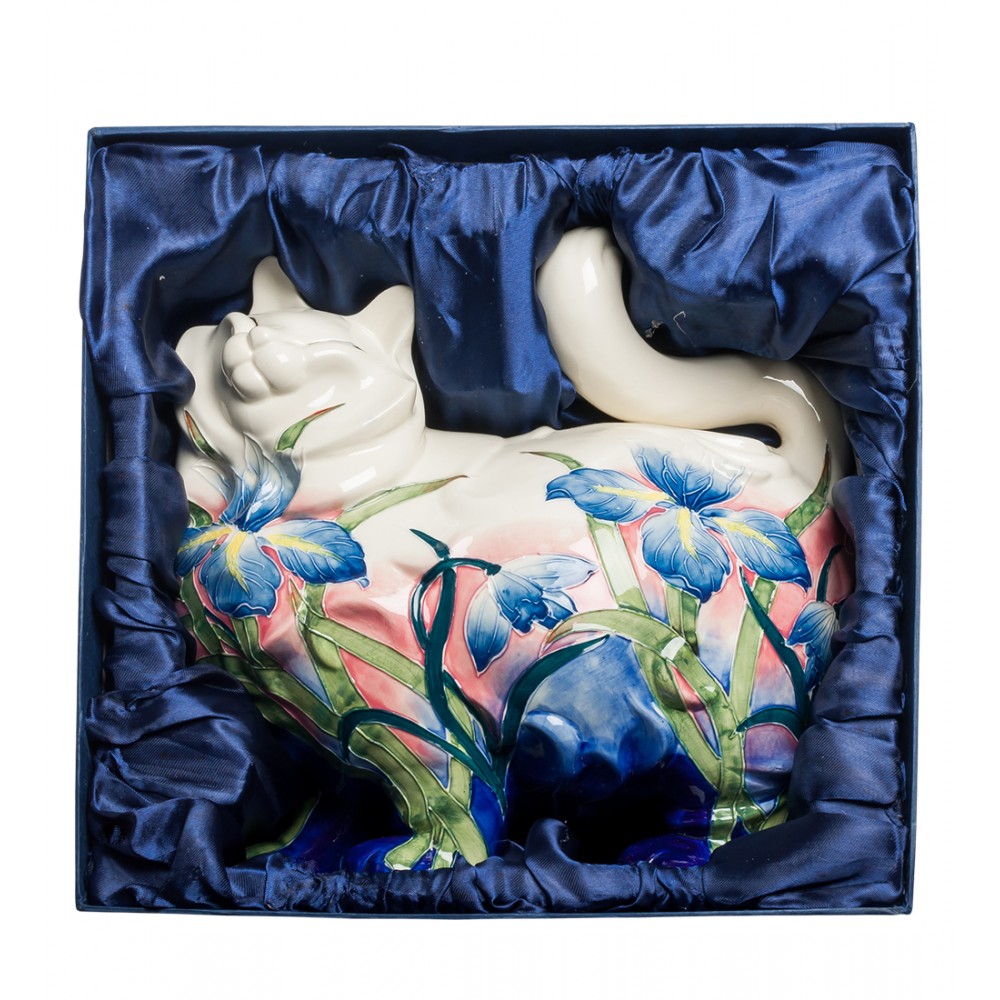 Изящная и завораживающая своей красотой фарфоровая статуэтка не дает отвести взгляд. Кошечка как будто притаилась в зарослях ирисов, так и хочется ее погладить! Порадуйте себя или своих близких таким милым домашним питомцем.