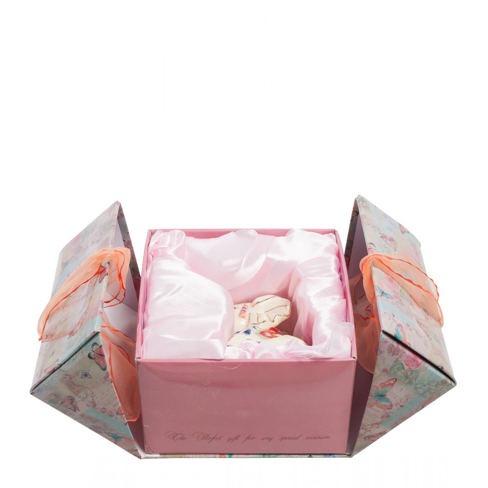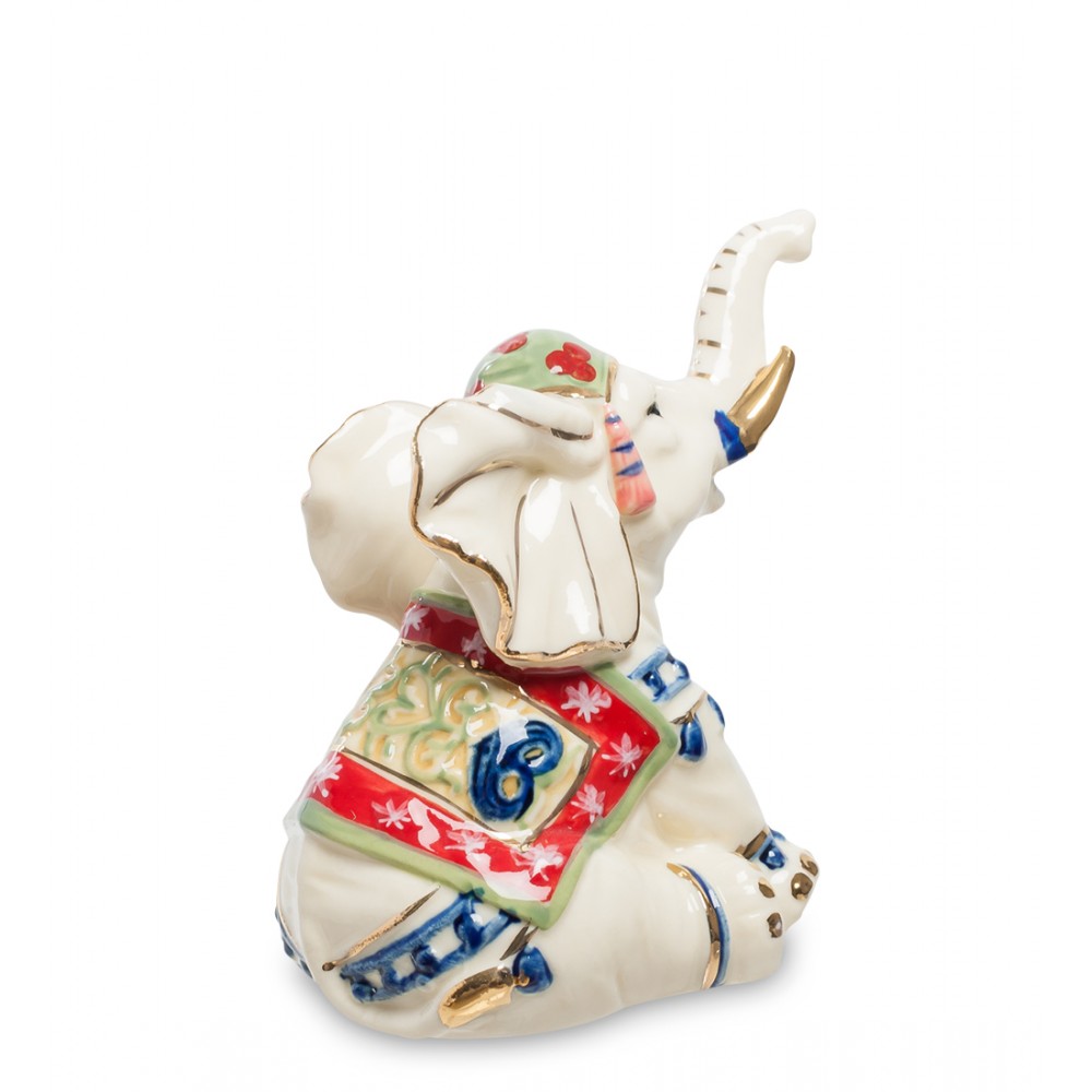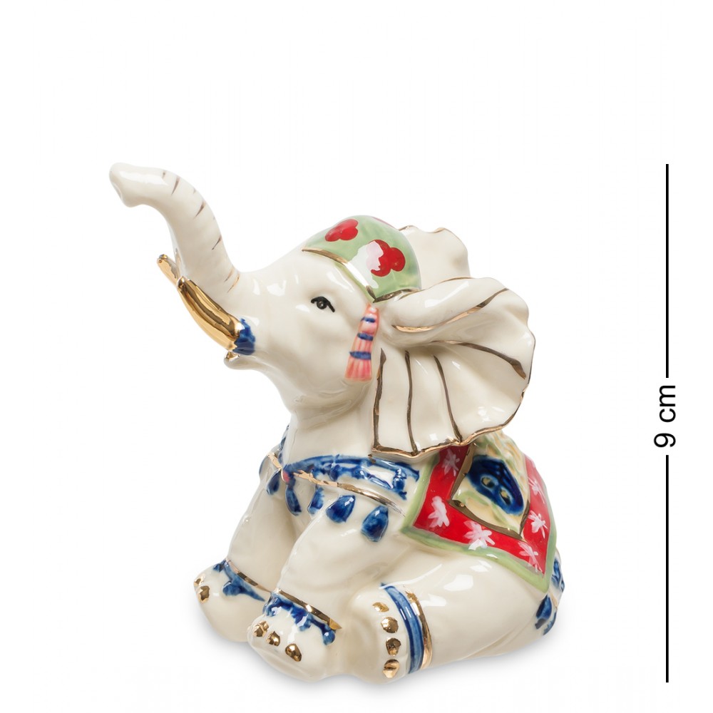 Фарфоровый 9-сантиметровый слон понравится всем, кто сохраняет хорошую традицию и украшает жилье статуэтками экзотических животных. Хотя слонов чаще всего изображают в процессе передвижения, этот – исключение из правил: он изображен в сидячем положении, и, судя по одеянию, выполняет один из цирковых номеров.