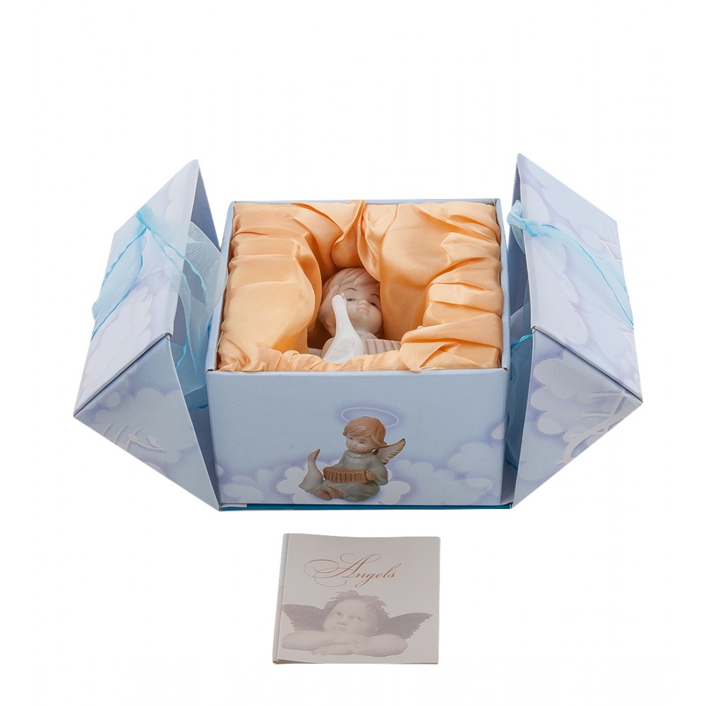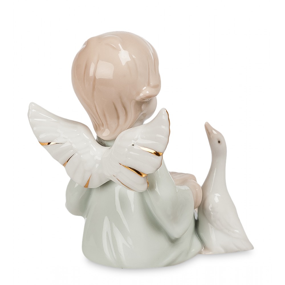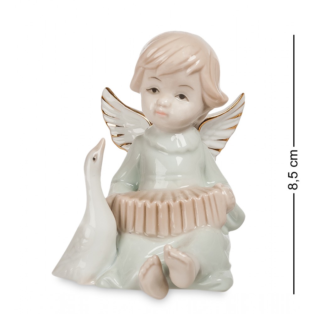Взглянув на статуэтку « Ангелочек » , изображающую крылатого младенца, играющего на детской гармошке для преданной слушательницы белой куропатки, многие вспомнят известную детскую песенку « Я играю на гармошке у прохожих на виду » . Судя по всему, маленький амур решил отказаться от стрел, которые бьют наверняка и, несмотря на сопротивление людей, на какое-то время возвращают в сердца чувство любви, и попробовать вернуть людей в лоно большого чувства при помощи музыки.