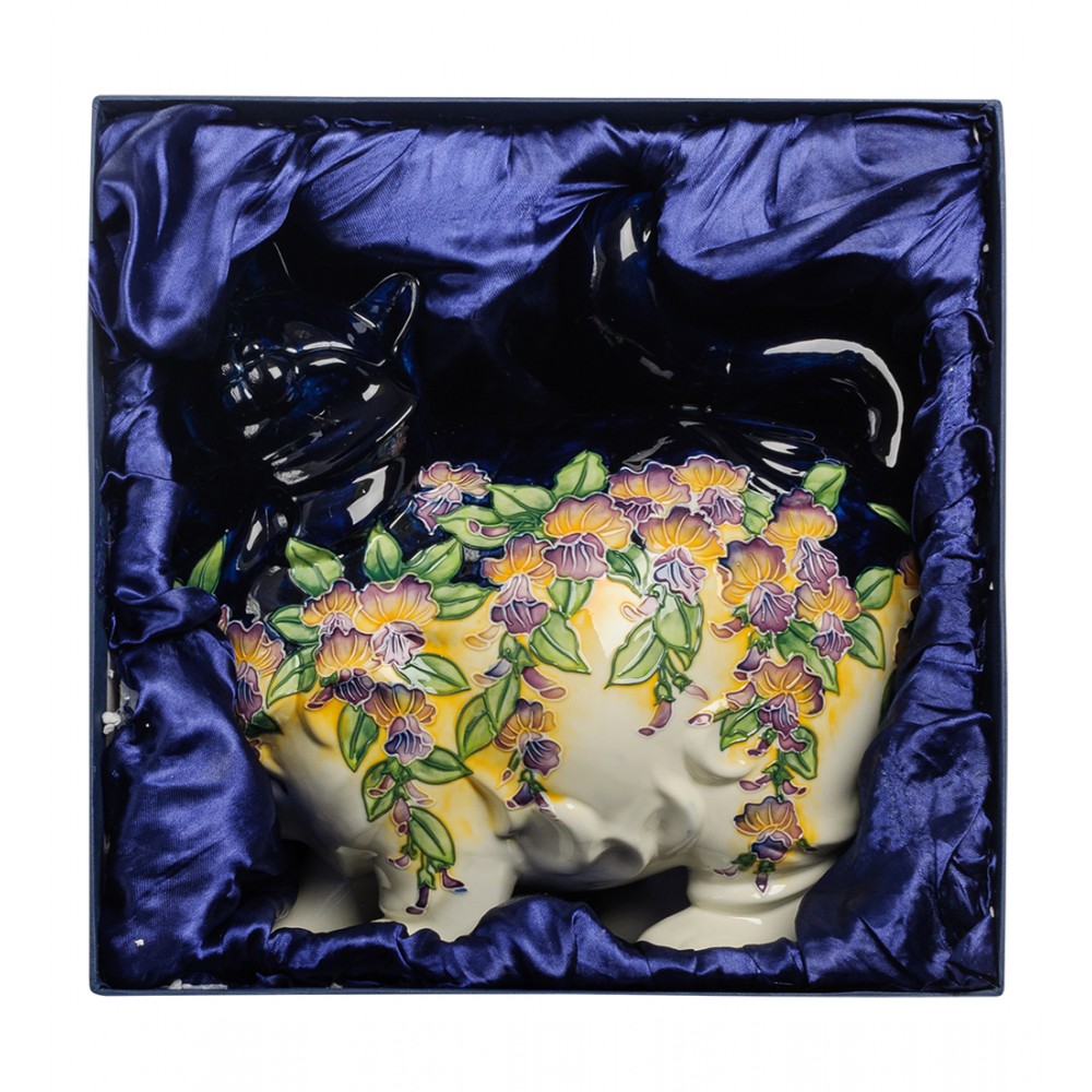 Эта фигурка - просто находка для всех любителей и любительниц кошек. Фигурка изображает упитанную кошечку с поднятым хвостом, тело которой украшают цветочные рисунки. Во внешнем виде этой фарфоровой фигурки успешно и очень гармонично сочетаются светлые и темные тона, а также рисунки.