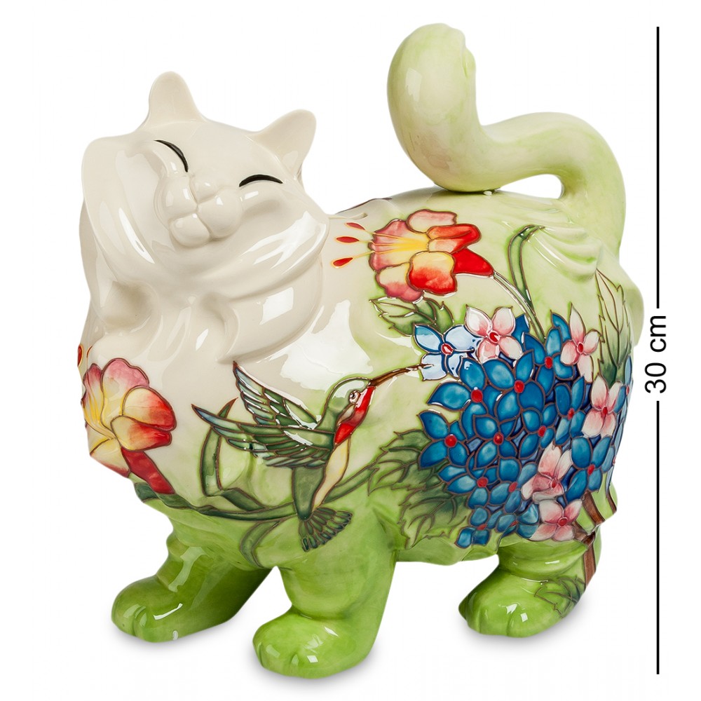 Милый котик в приятных белых и зеленых оттенках – это не обыкновенная, обычная фигурка. Это также поразительно вместительная, а основное безумно симпатичная копилка для ваших крупных и мелких накоплений. Цветы на теле поразительно милого котика ему дают нежность и контраст, хорошо дополняют его, милый и прикольный образ. Кошка станет не просто вашей любимой копилкой, но и любимой игрушкой для вашего ребенка.