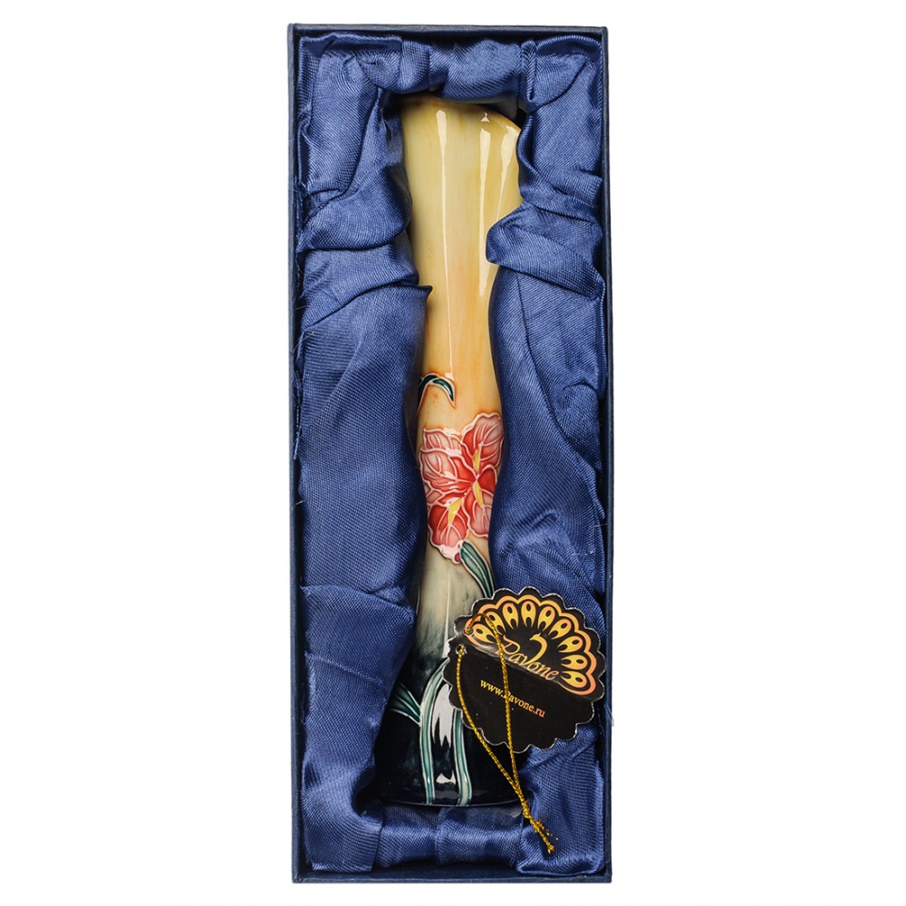 Фарфоровая ваза напоминает тоненький сосуд, в котором смогут стоять только несколько цветов. Она выполнена в оригинальном стиле, отсутствуют большие широкие формы, но этого вовсе не нужно, данная ваза создана для других целей. Иногда, возвращаясь со свидания, девушка может нести лишь одну ярко-красную розу, которую гордо несёт домой. И вот именно для таких случаев, когда для одного цветка нужен особенный сосуд — подойдёт эта ваза.