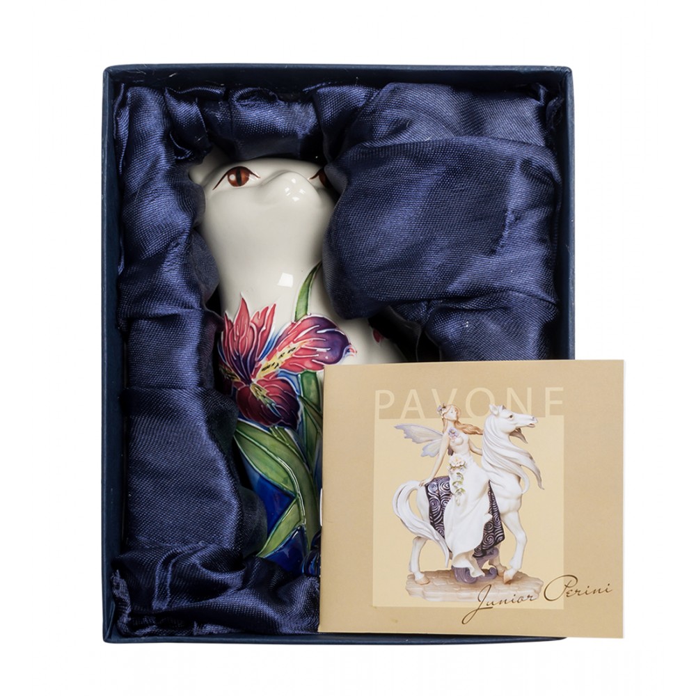 Кошка является одной из классических тем для изготовления фарфоровых изделий. У этого представителя семейства кошачьих умный и спокойный взгляд. Усадите фарфоровое животное рядом с собой, и вы получите дополнительный повод для радости. Белую головку так и хочется погладить, а изображения трав и цветов вносят приятное разнообразие.