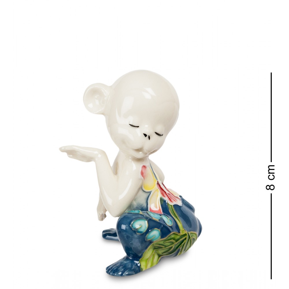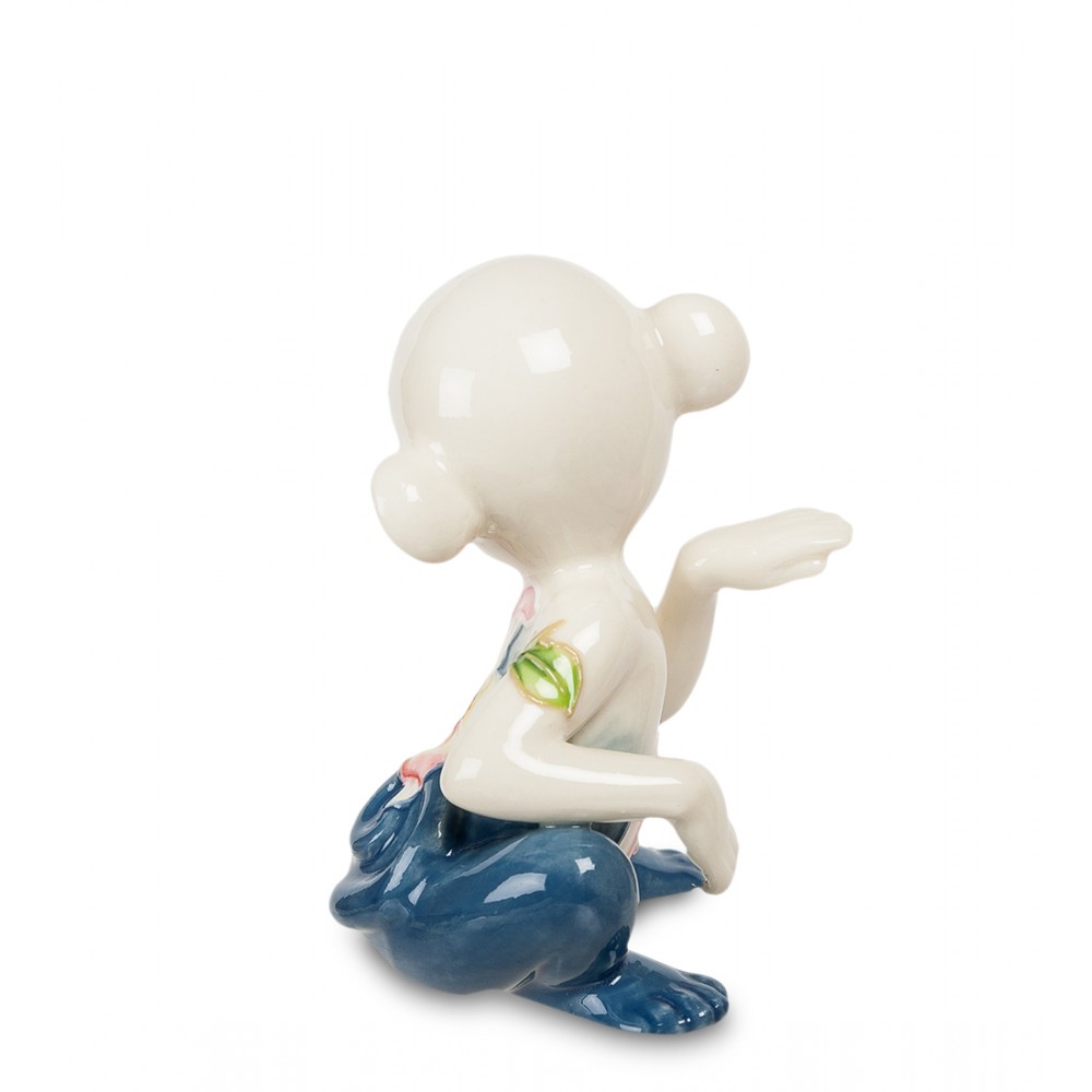 Фарфоровая обезьянка в оригинальной цветовой палитре с тёмно-синим низом и белым верхом может стать запоминающимся подарком на день рождения или на первом свидании с девушкой. Если вы хотите оставить прекрасные воспоминания о себе, подарите эту необычную фигурку с большим орнаментом из цветов.