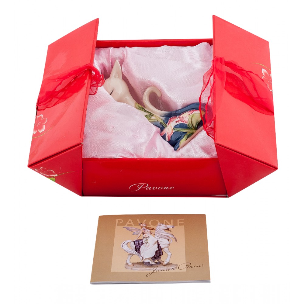 Милая и красивая кошка будет радовать владельца в самых трудных ситуациях. Стоит только обратить взор на изящную фигурку кошки, как былой пыл и раздражение резко сменятся на спокойствие и равновесие. Создатель фарфоровой статуэтки придал кошке утонченный внешний вид, украсив ее цветочными мотивами, и внес разнообразие в безупречную белоснежность ярким синим оттенком. Такая утонченная красота свойственна лишь этой кошке, которая будет всегда рядом с вами.