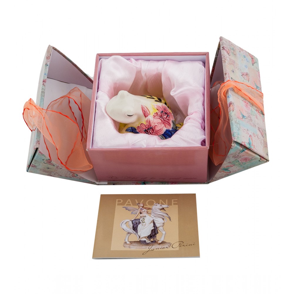 Лягушка в цветах — это что-то новенькое. Но только не для художников, которые трудились над этой коллекцией неординарных статуэток. Симпатичная лягушка с цветочным орнаментом и бабочкой, которую, кажется, ей удалось поймать, станет хорошим дополнением к убранстве вашей квартиры и заставит улыбнуться — ведь она не только красива, но и достаточно забавна.