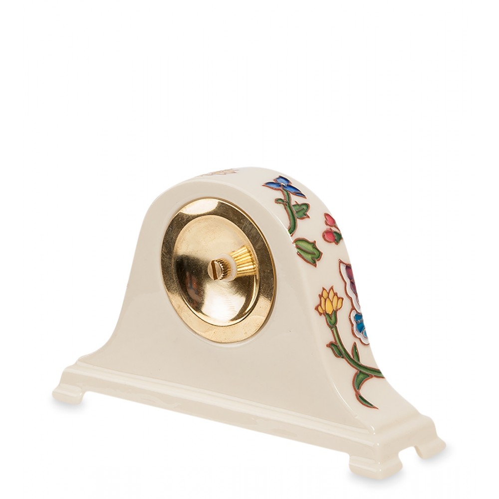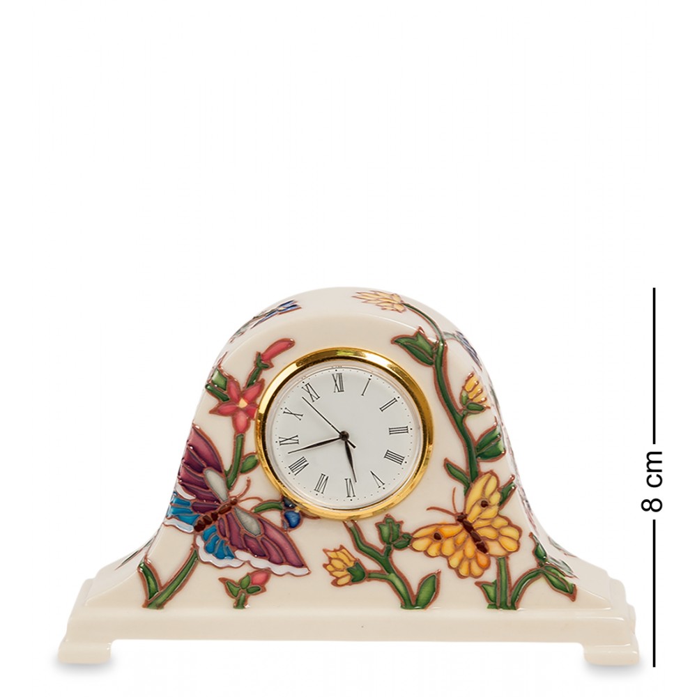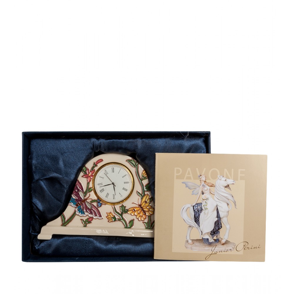 Часы (Pavone); Эти небольшие настольные часики будут вам всегда показывать точное время, отменяя его до последней секунды. Но при этом фарфоровый корпус, в который встроен часовой механизм, напоминает о весне, когда на ветках деревьев появляются первые листики и расцветают цветы, на которые слетаются в поисках сладкого угощения разноцветные бабочки.