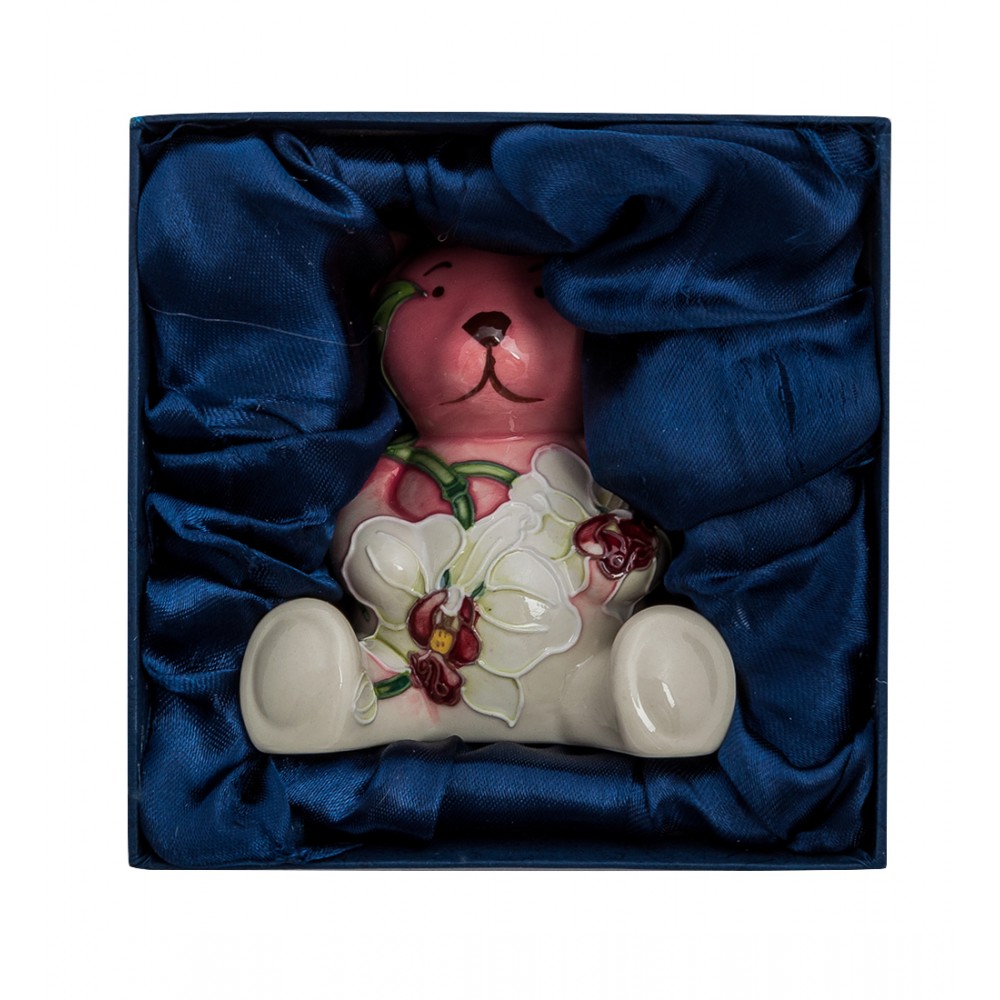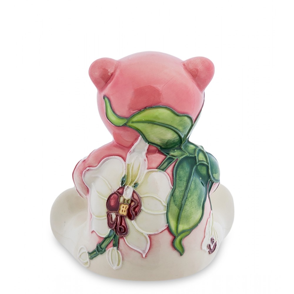 Фигурка ''Медвежонок'' (Павоне); Игрушечного медвежонка забыли в траве и растения начали его заплетать, пропустив побеги вдоль спинки, прикрыв лапы цветами в белом цвете с красными сердцевинками. А медвежонок терпит, хоть ему и щекотно, и тщательно смотрит перед собой нарисованными точечками-глазками: ну где же там моя небольшая домохозяйка, я ведь, хотя и красивым стал среди таких цветов, но все равно скучаю в одиночестве.