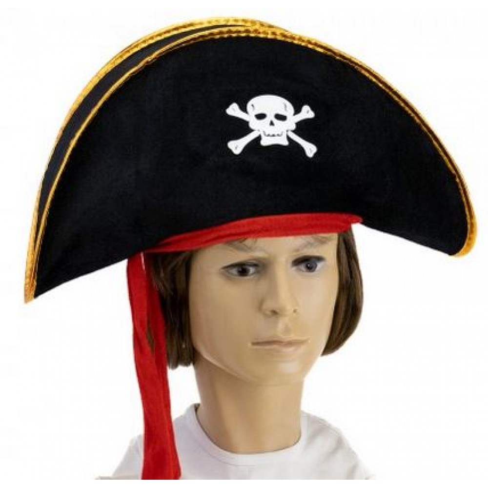 Хочеш відчути себе справжнім завойовником семи морів? Велюровий піратський капелюх у вигляді трикутника з закругленими краями, золотистою облямівкою по краях і червоною пов'язкою доповнять ваш карнавальний костюм. Капелюх Пірата велюр з пов'язкою підкреслить вашу палку вдачу і доповнить образ капітана піратського корабля. Купити піратський капелюх можливо в нашому інтернет магазині. Купив Капелюх Пірата велюр з пов'язкою в інтернет-магазині Подарок-ТУТ! Ви отримуєте не тільки якісний товар, але й 100% позитивних вражень від придбання. Серед нашого широкого асортименту товарів, Ви знайдете безліч незвичайних та оригінальних подарунків для різноманітних заходів. Прикольні капелюхи та карнавальні шапки принесуть родзинку в образ вашого персонажа на тематичній вечірці, карнавалі чи маскараді. Різноманітність форм, фасонів та моделей головних уборів, безумовно, полегшить Ваш пошук оригінального образу.