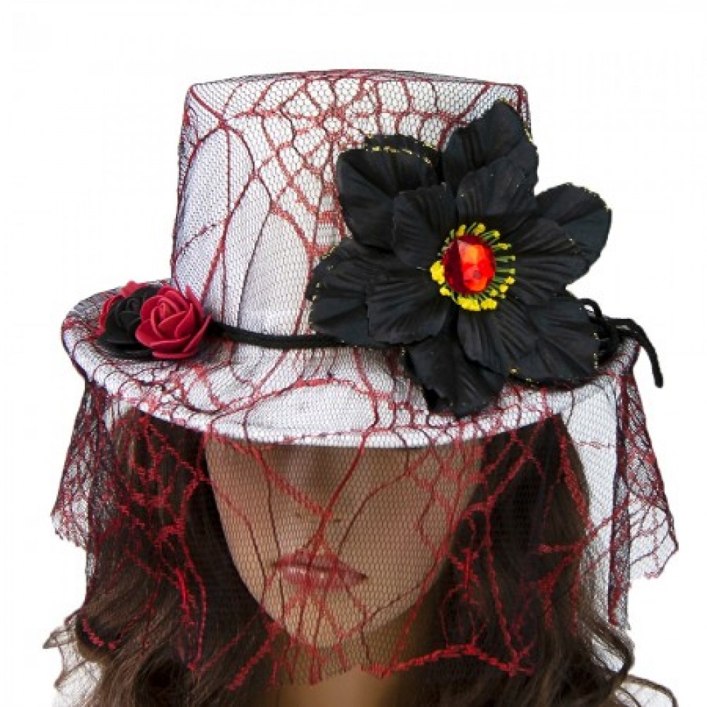 Капелюх Стімпанк Вікторіанська Готика (білий з червоним) 11462