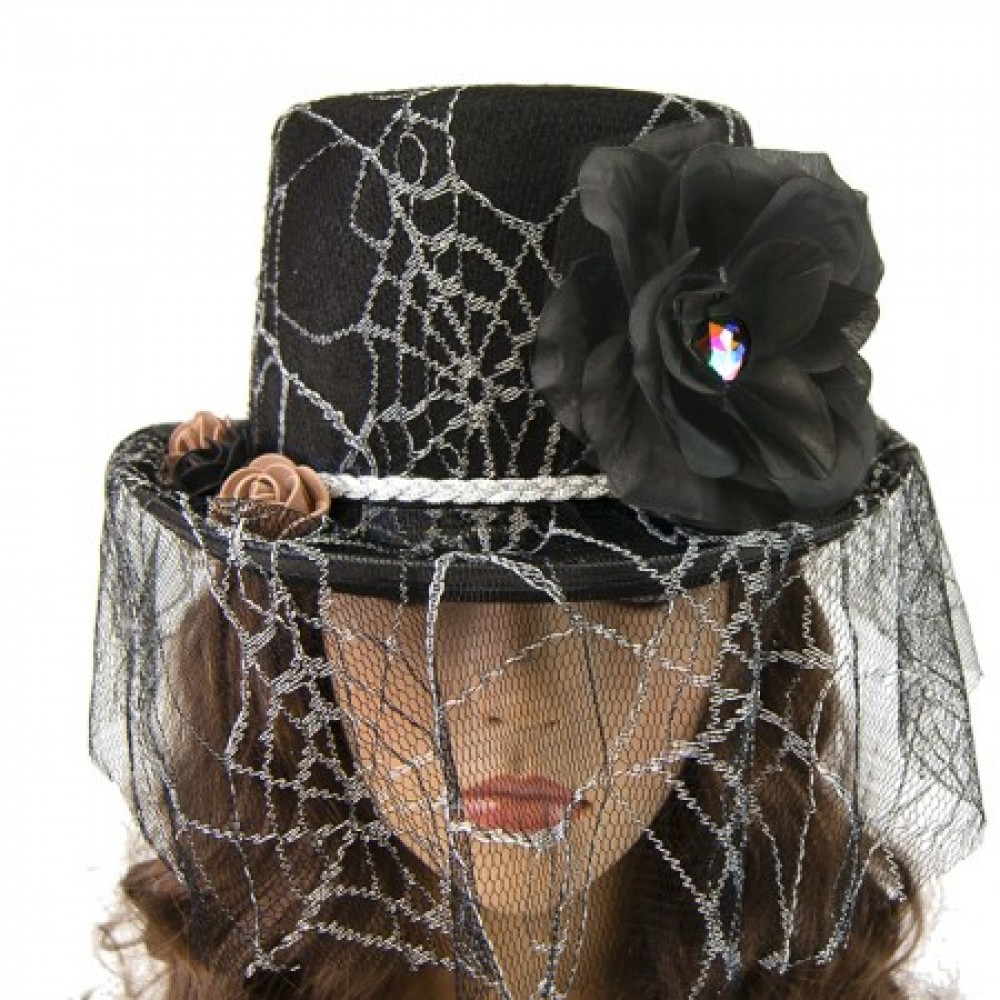 Капелюх Стімпанк Вікторіанська Готика (чорний з білим) 11473