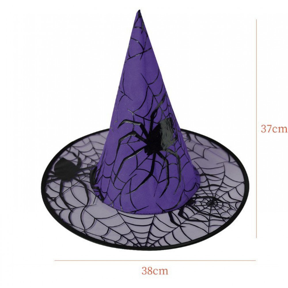 Капелюх відьми фіолетовий з павутиною, сітчастий, 37×38 см — для Хелловіну