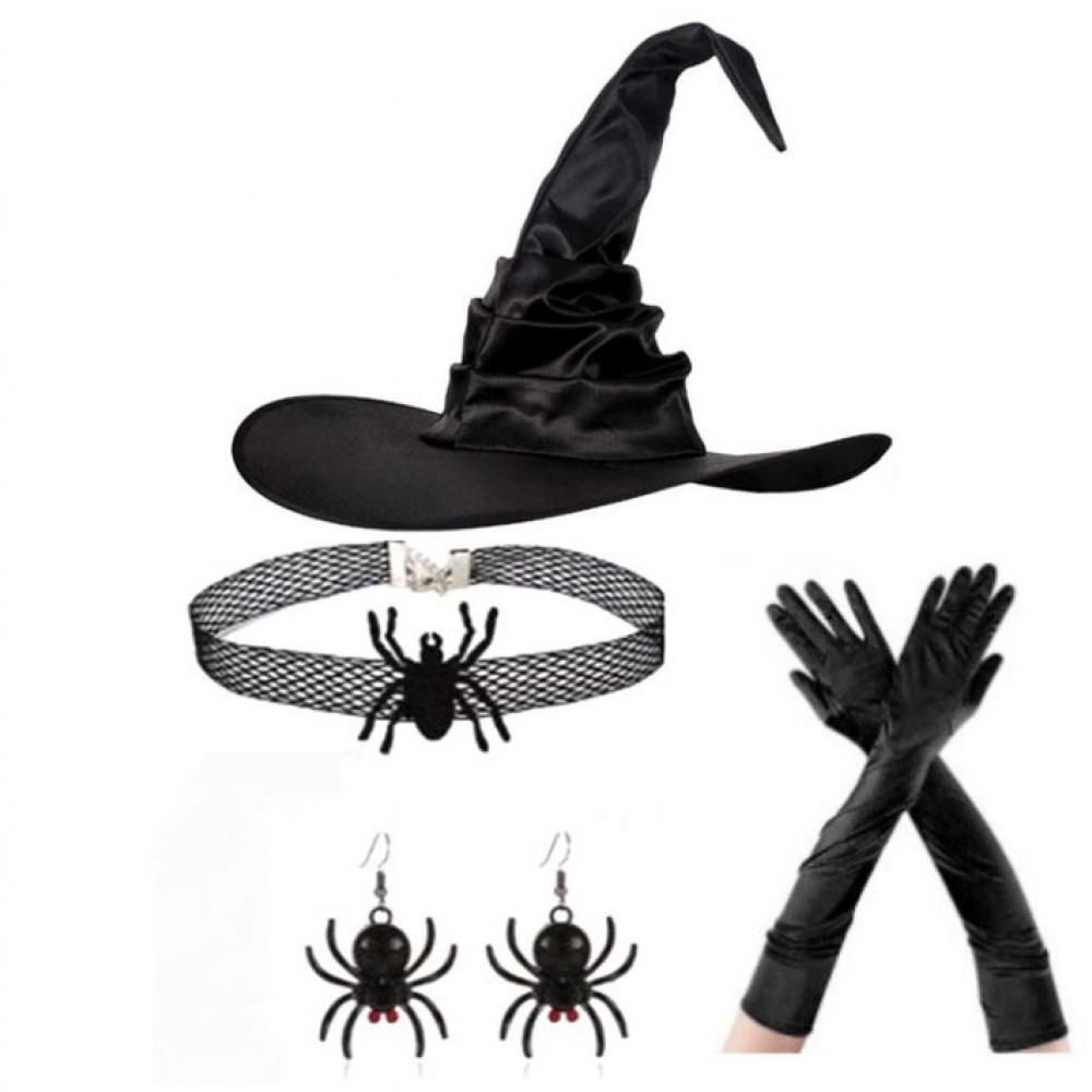 Набір відьми з аксесуарами: капелюх, рукавички, чокер і сережки з павуками для Хелловіну