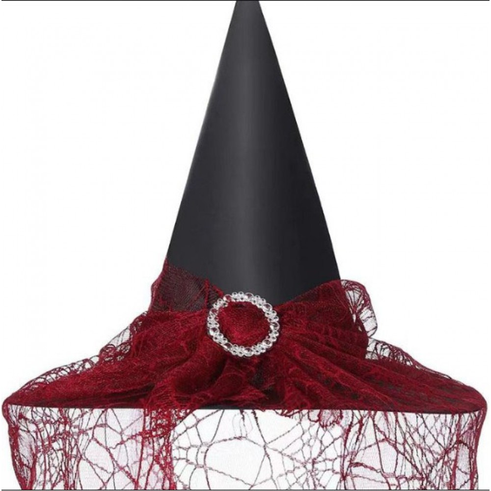 Готуєте образ відьми, чаклунки чи казкової феї? Жоден костюм не буде повним без ефектного капелюха. Класичний чорний капелюх з гострим верхом, бордовою вуаллю у вигляді павутиння та блискучою пряжкою стане головним акцентом вашого святкового образу.