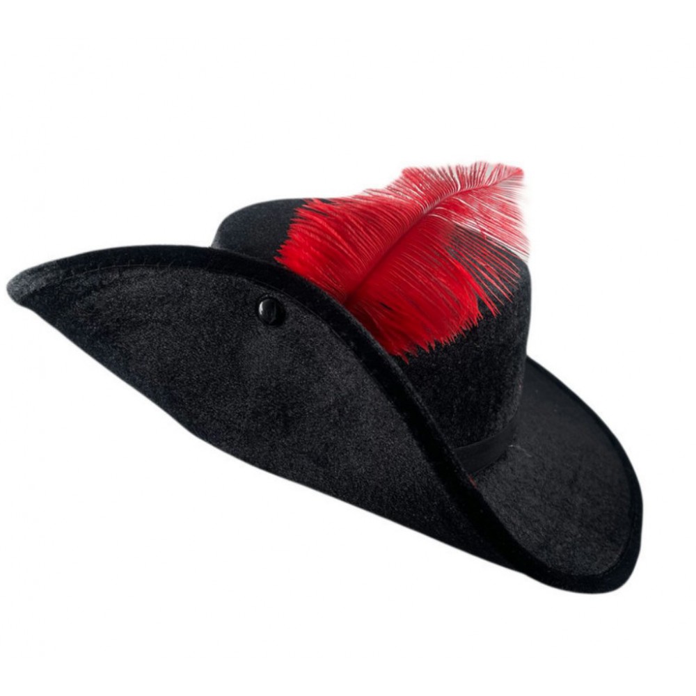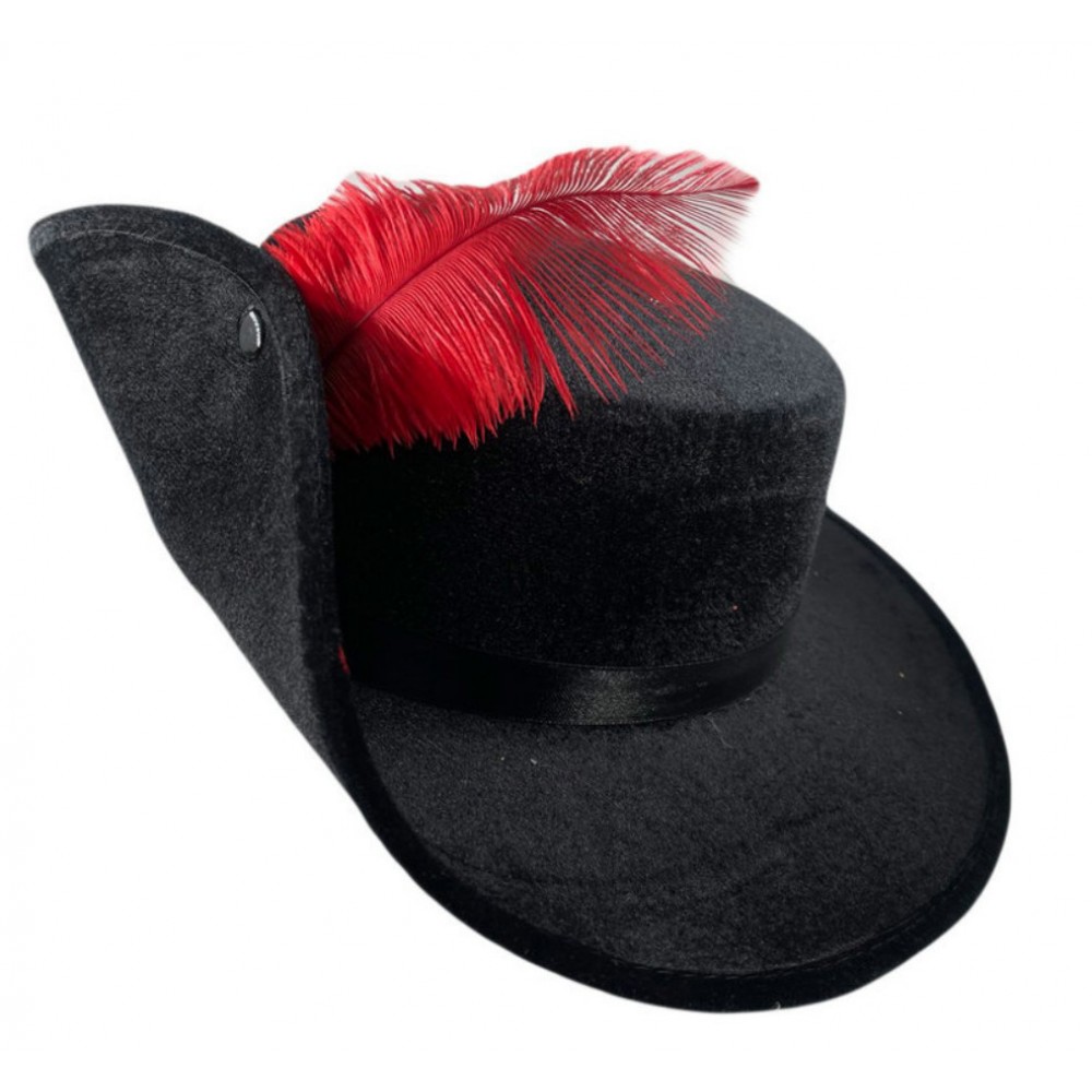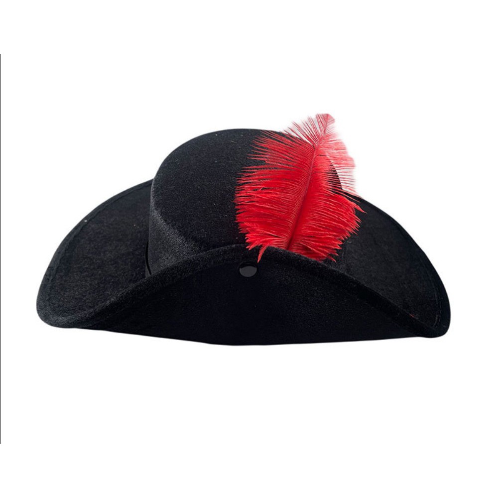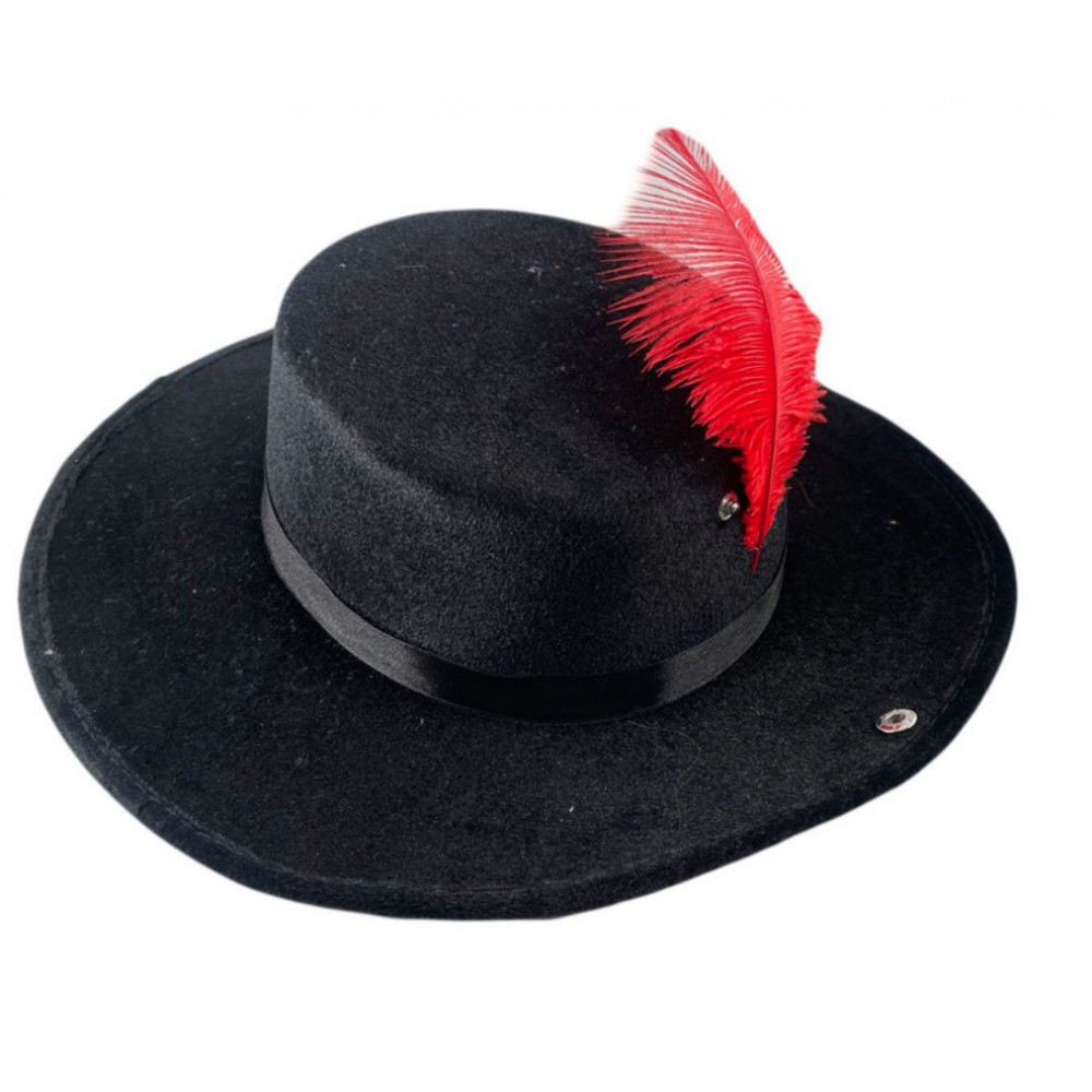 Шляпа в стилі Зорро — це той аксесуар, який відразу задає образ. Надягнув — і вже не просто гість на вечірці, а персонаж з характером. Чорна форма з широкими полями виглядає строго і ефектно, а яскраве червоне перо додає акцент, який добре помітний на фото і в русі.