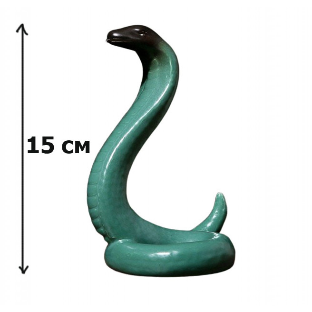 Вишукана керамічна статуетка змії у благородному бірюзовому кольорі втілює граціозність та елегантність. Глянцеве покриття надає фігурці особливого сяйва, підкреслюючи плавні лінії та бездоганність виконання. Чорна голова створює стильний контраст, додаючи образу загадковості та шарму.